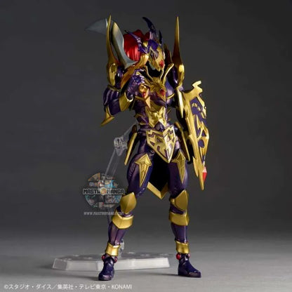 L'armatura che ricopre l'intero corpo è dipinta in un profondo viola metallico, con decorazioni dorate. Le decorazioni che si estendono dall'elmo sono anch'esse dipinte in un bellissimo rosso metallizzato, che conferisce un aspetto impressionante. Le articolazioni di questo pezzo sono incredibili, permettendo una varietà di pose davvero unica.