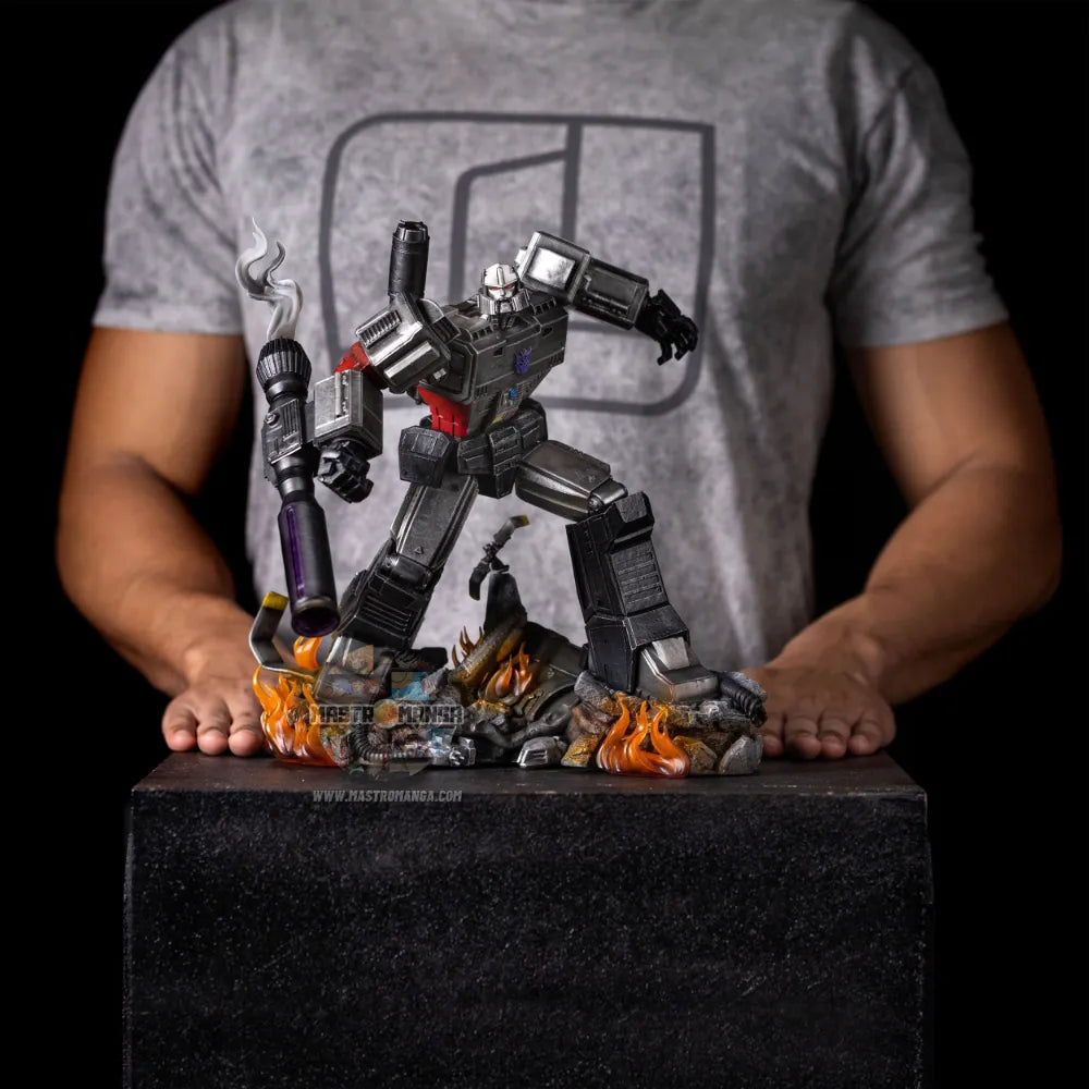 La statua raffigura Megatron in una posa aggressiva e dominante, pronto a combattere gli Autobots. Ogni dettaglio è stato curato con estrema precisione: dal design del corpo meccanico alle linee del volto, fino ai dettagli delle armi iconiche, trasmettendo la minaccia e l’autorità che caratterizzano il personaggio.