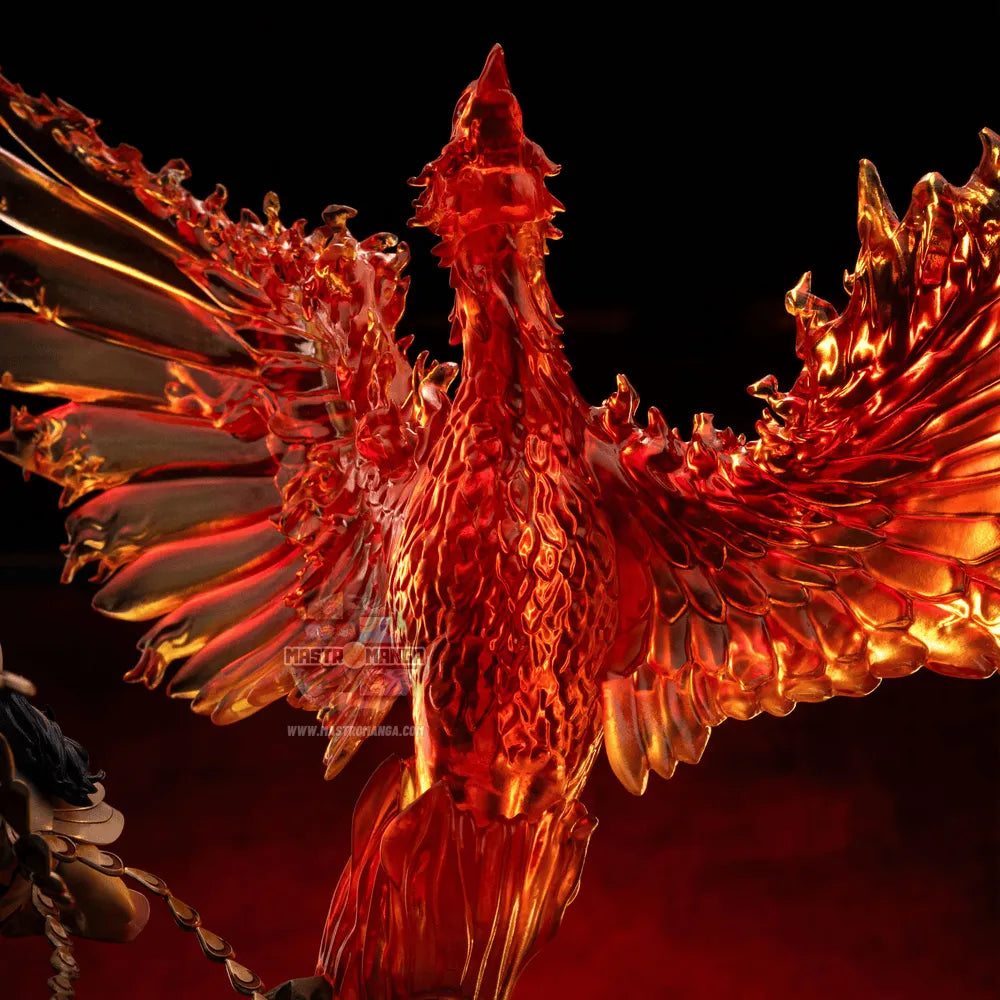 La versione deluxe propone una base esclusiva che ricrea una vampata di fuoco dalla quale prende vita una fiammeggiante fenice in resina trasparente.