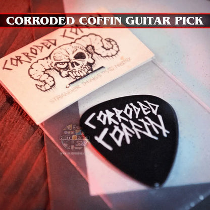 · Corroded coffin guitar pick