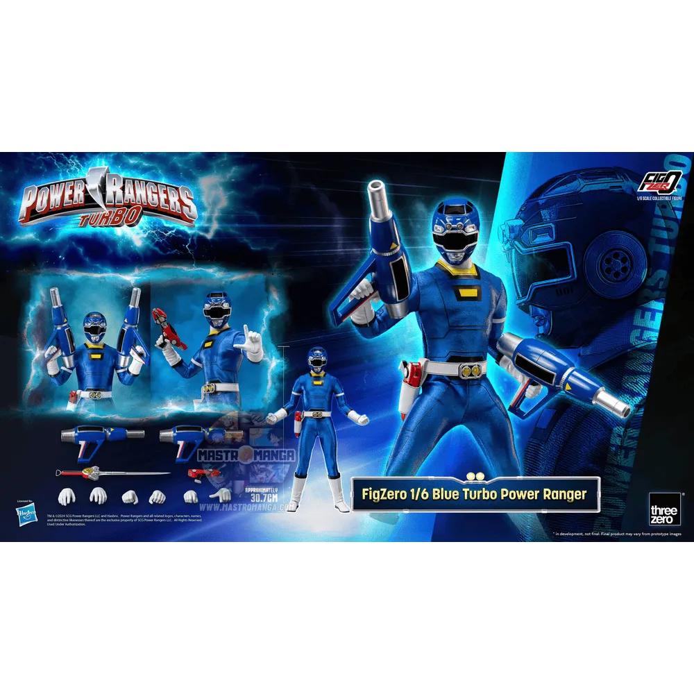 Dalla quinta stagione della serie televisiva Power Rangers, threezero e Hasbro sono orgogliosi di presentare la FigZero Power Rangers Turbo Collection. Ogni figura da collezione è alta circa 30cm e presenta fino a 34 punti punti di snodo per una varietà di pose incredibile. La combinazione di parti in stoffa e plastica garantisce un aspetto realistico come non avete mai visto. Ogni Turbo Power Ranger include un Auto Blaster e una Turbo Blade, la sua arma "caratteristica" e mani intercambiabili.