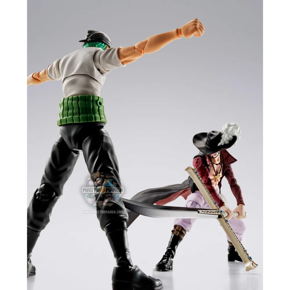 Dracule Mihawk, in versione Hawkeye, arriva nella serie S.H.Figuarts! La figura è dotata di numerose articolazioni e di accessori: volti e mani intercambiabili e spada. Inclusi nella scatola troverete anche due volti intercambiabili per Monkey D. Luffy e Roronoa Zoro in versione Romance Dawn (venduti separatamente).