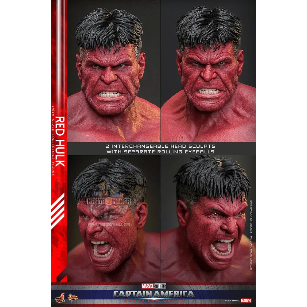 Basato sulla straordinaria apparizione di Red Hulk in Captain America: Brave New World, la figura d'azione in sesta scala altamente dettagliata presenta due sculture di testa di nuova concezione: una ruggente e una che stringe i denti. Queste sculture di testa rappresentano fedelmente la trasformazione di Thaddeus Ross in Red Hulk, ognuna delle quali mostra la sua espressione facciale prominente e arrabbiata. Alta circa 47 cm, la figura vanta un corpo muscoloso enorme e snello, completo di consistenza cutanea realistica e vasi sanguigni sotto la superficie rossa affilata.