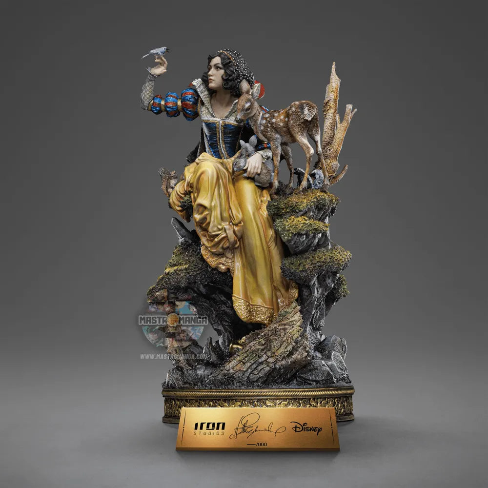 Iron Studios è orgogliosa di presentare questa statua , che inaugura la serie Deluxe Signatures, la quale ritrae i più bei dipinti in sculture tridimensionali meticolosamente dettagliate. La statua è stata progettata con estrema attenzione e cura, sulla base delle referenze ufficiali. Frutto di decenni di studio su persone, ambienti, animali e texture, i dipinti dell'artista Heather Edwards, ispirati alla magia dei film Disney, hanno conquistato il Disney Fine Art and Fantasy Con e ottenuto riconoscimenti internazionali e premi da organizzazioni prestigiose. Il suo processo pittorico è in continua trasformazione ed evoluzione e i suoi dipinti sono condivisi e collezionati in tutto il mondo. Biancaneve è la prima statua degli Iron Studios che riproduce il lavoro di Heather Edwards, e molte altre sorprese sono in arrivo!