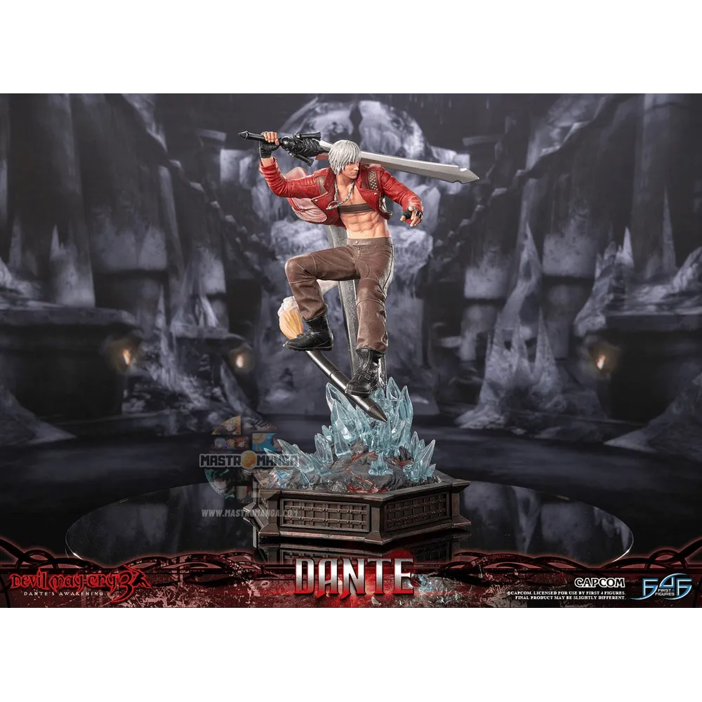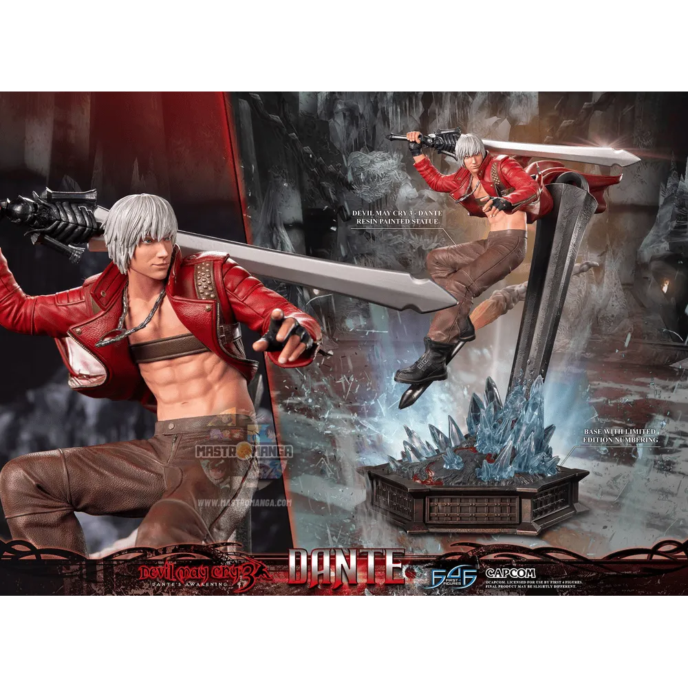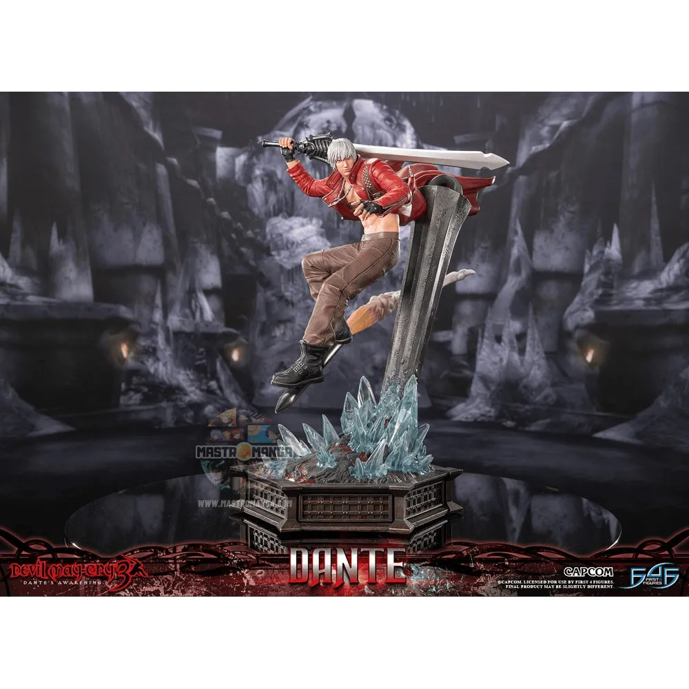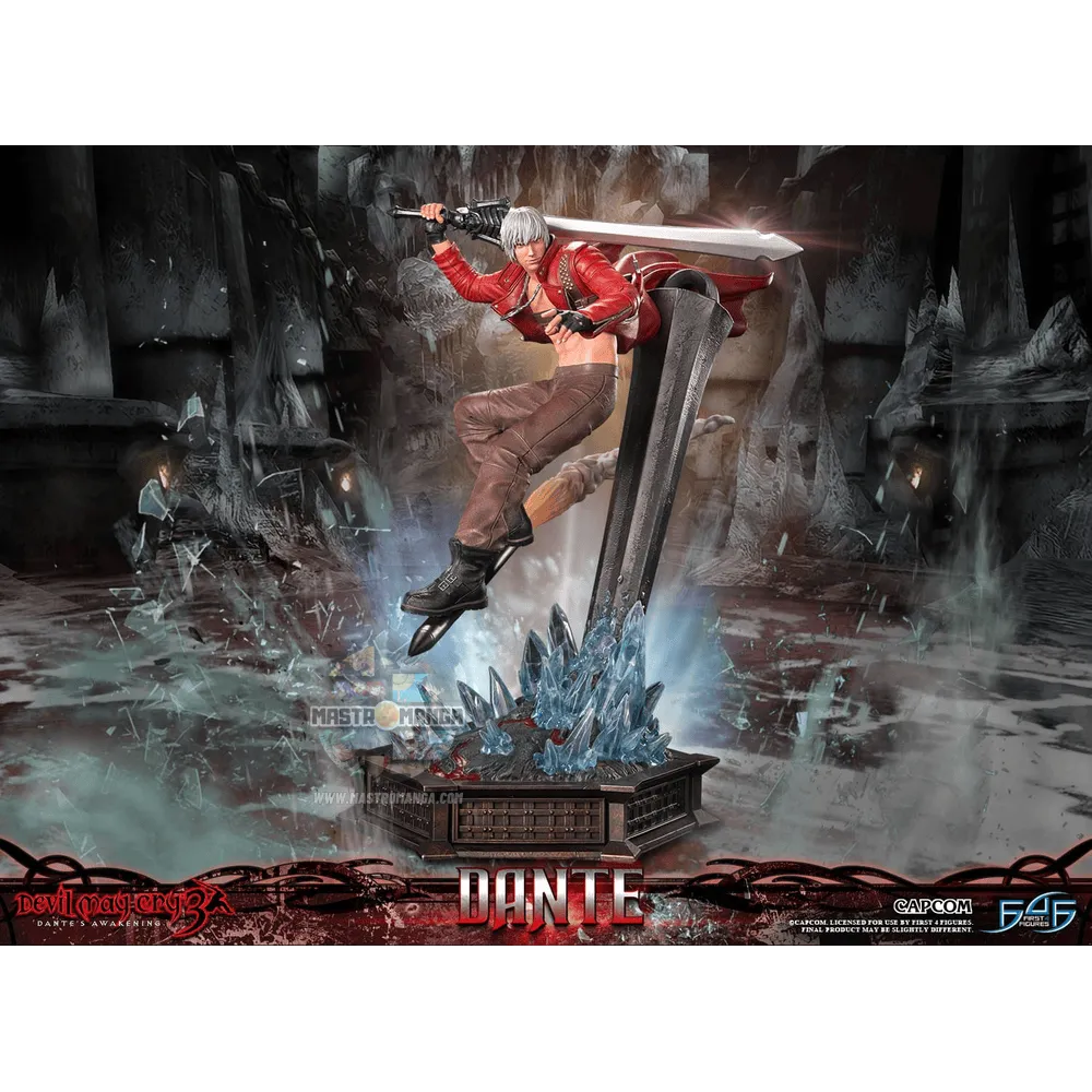 Dante, il protagonista di Devil May Cry 3, è un cacciatore di demoni carismatico e arrogante con un atteggiamento da diavolo. A brandisce una varietà di armi e possiede potenti abilità demoniache, che lo rendono una forza formidabile contro le forze del male. La statua è ispirata all'intensa lotta contro il boss con Cerbero.