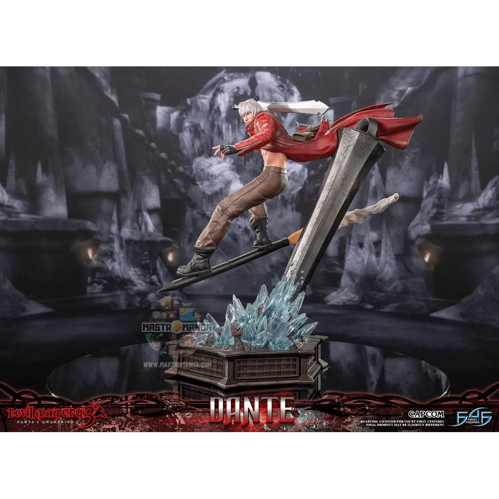 Presenta Dante che brandisca con sicurezza la sua spada, Rebellion, nella mano destra mentre cavalca il razzo che Lady gli ha sparato dopo l'epica battaglia. La base altamente dettagliata cattura magnificamente l'ambiente ghiacciato e l'atmosfera desolata dell'ingresso nella Camera del Guardiano del Ghiaccio.