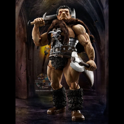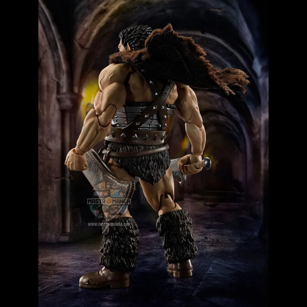 La figura arriva con un'altezza di circa 20cm, braccia, volti e mani intercambiabili, mantello in finta pelliccia, spada e ascia. Un pezzo che non puo' mancare nella collezione di ogni fan della serie creata da Miura.