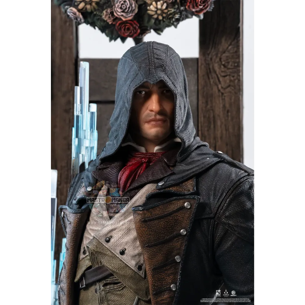 La scultura cattura ogni particolare del personaggio: dall’abbigliamento dell’epoca rivoluzionaria francese, con cappuccio, giacca e cinture accuratamente riprodotte, fino alla precisione dei volti e delle proporzioni. La figure è altamente articolata, consentendo di ricreare le pose dinamiche e le scene d’azione tipiche di Arno, dall’assalto furtivo agli attacchi spettacolari con spada e pugnale.