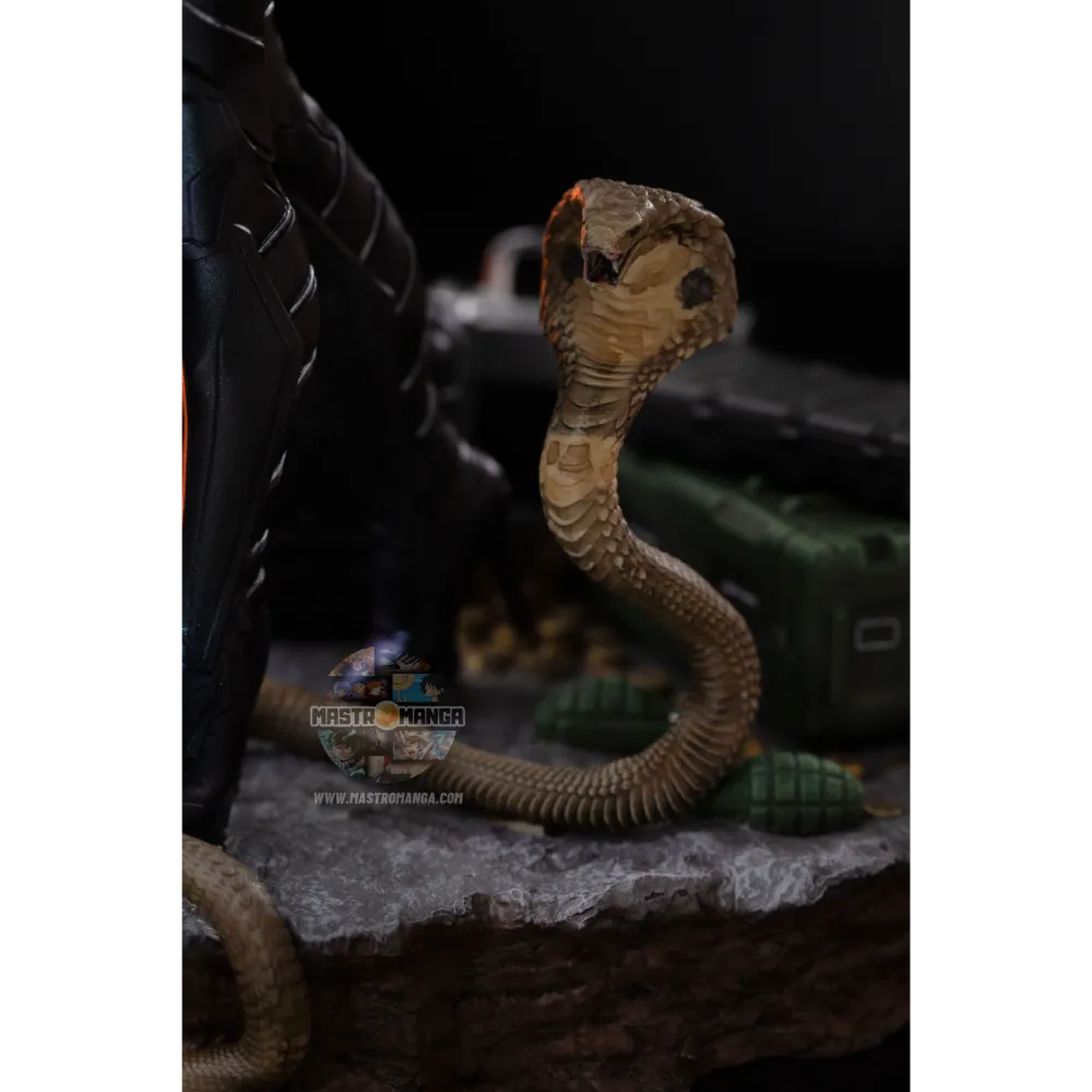 La base dinamica, ispirata all’estetica militare del Cobra, completa la composizione donando un senso di forza e autorità. Questa statua non è solo un tributo al mondo di G.I. Joe, ma una celebrazione del carisma oscuro di uno dei suoi personaggi più amati.