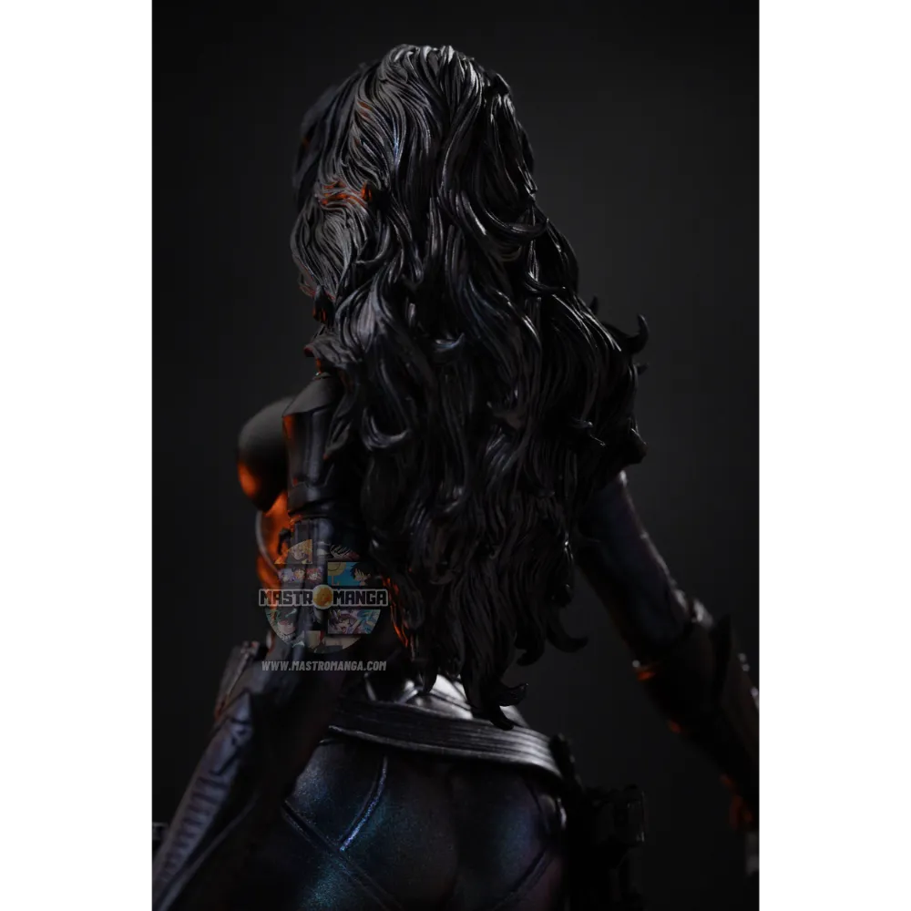 La Baronessa è ritratta in una posa d’azione, armata e pronta al combattimento, con la sua iconica tuta nera tattica e gli occhiali rossi che ne accentuano lo sguardo glaciale. Ogni dettaglio — dalle pieghe del costume ai riflessi metallici delle armi — è scolpito con maestria e dipinto a mano, offrendo un livello di realismo straordinario.