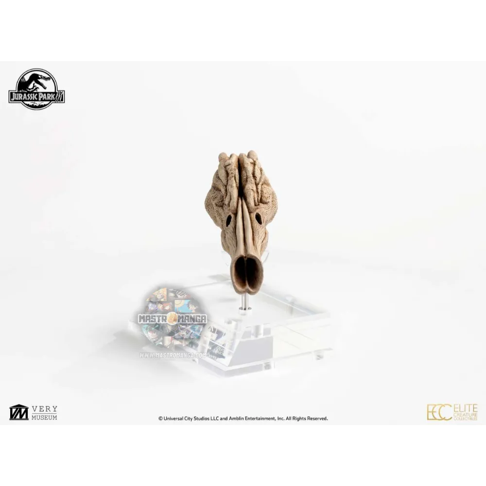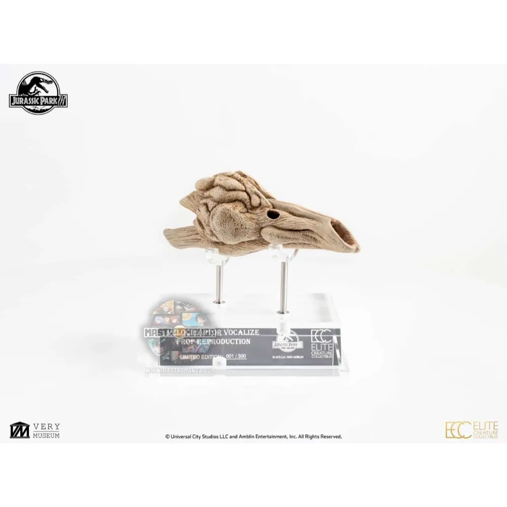 Elite Creature Collectibles è orgogliosa di presentare questa riproduzione della Camera di Risonanza del Velociraptor come parte della nuova collezione di oggetti di scena cinematografici dedicata al franchise di Jurassic Park. Creata con accesso diretto al prop originale utilizzato sul set e perfezionata dagli artisti Mavis e Oskar Ankarudd, questa replica viene presentata su una base espositiva in acrilico in stile asta ed è completamente rimovibile dal supporto.