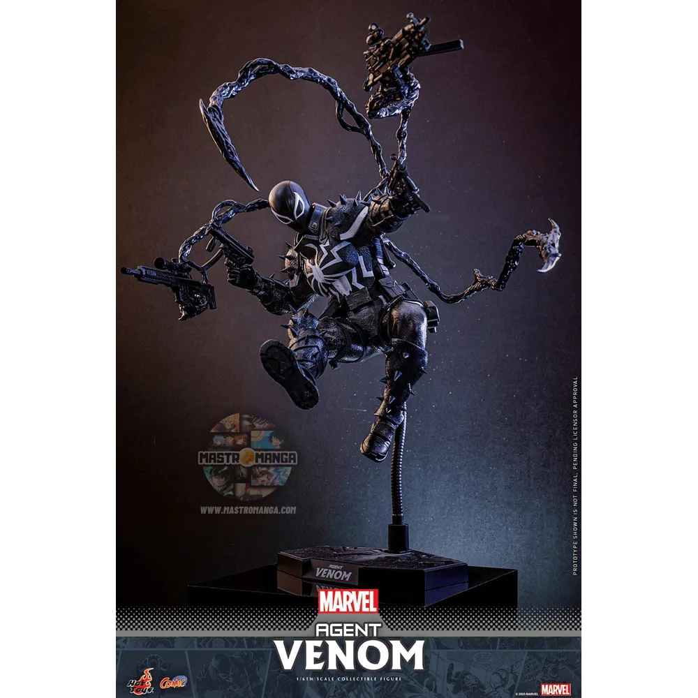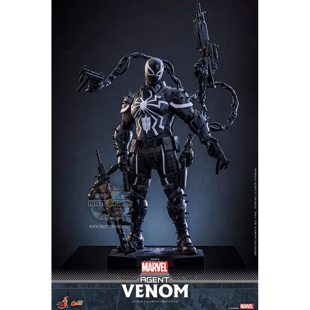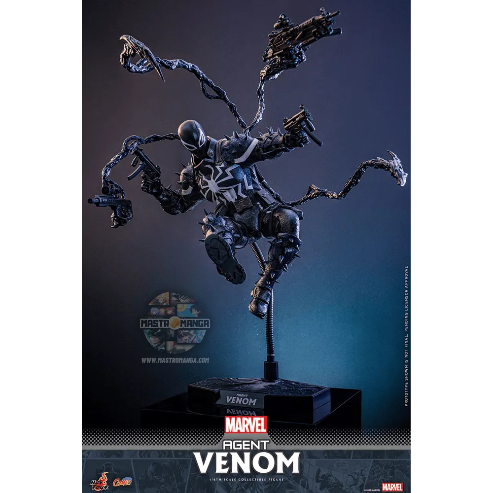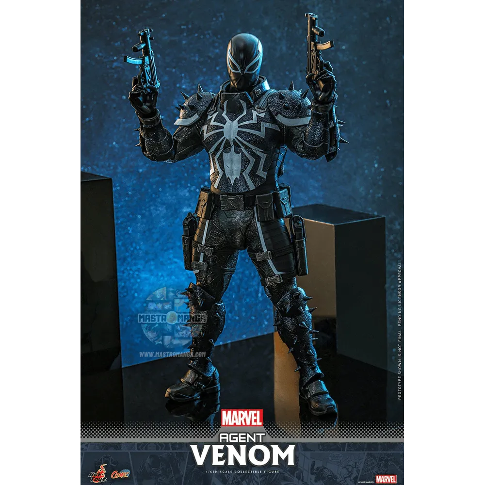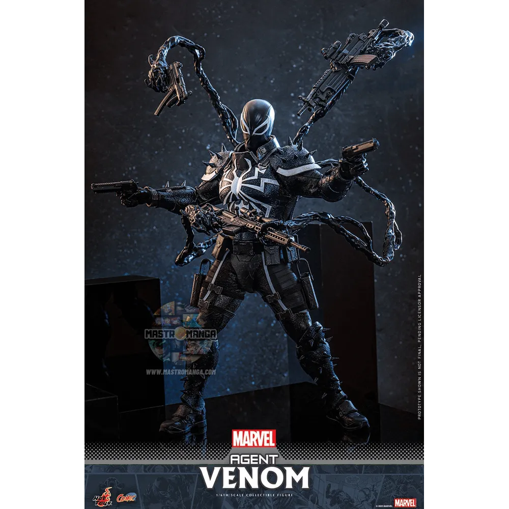 Meticolosamente realizzata sulla base di Marvel Comics, la action figure di Agent Venom presenta una scultura della testa di nuova concezione con occhielli intercambiabili, un corpo specializzato che ritrae naturalmente il fisico muscolare dell'agente Venom, un'armatura simbiotica con punte che mostrano un tema militare, un avambraccio a lama simbiotica intercambiabile, due stili di viticci attaccabili alla schiena della figura, due stringhe di accessori di tessitura, una serie di armi da fuoco tra cui fucile da cecchino, mitragliatrice, mitragliatrici, pistole e, infine ultimo luogo, una base di figura appositamente progettata con il nome del personaggio.