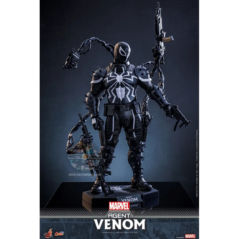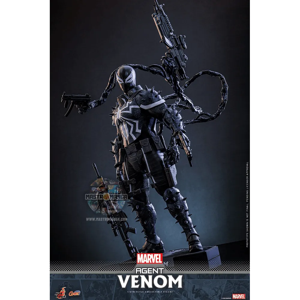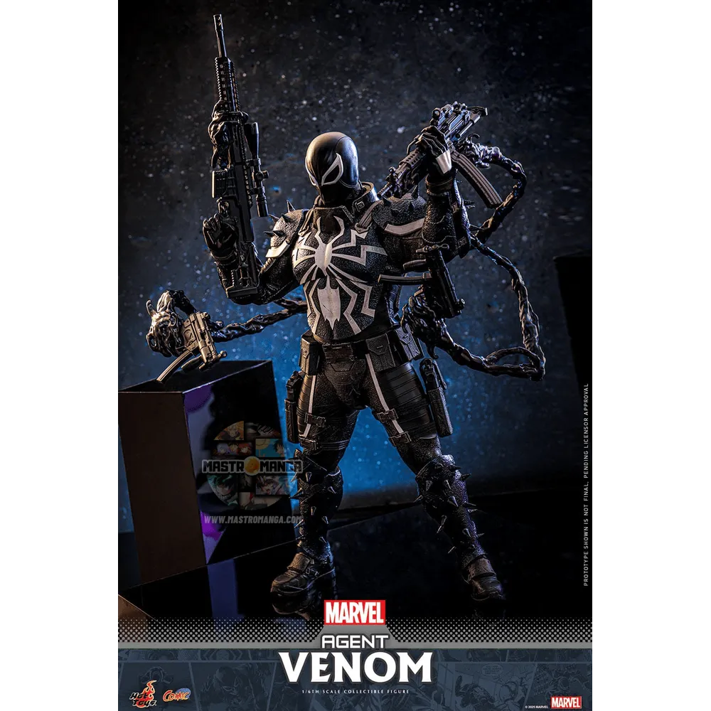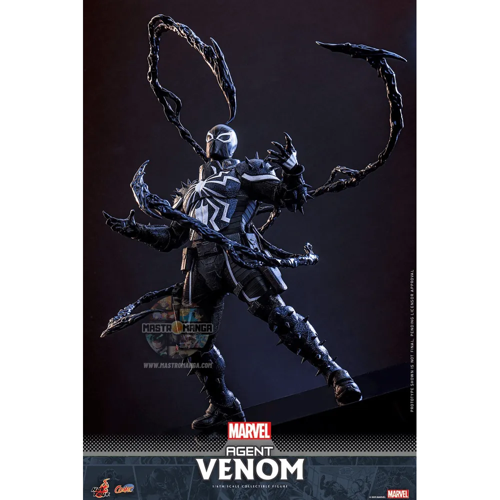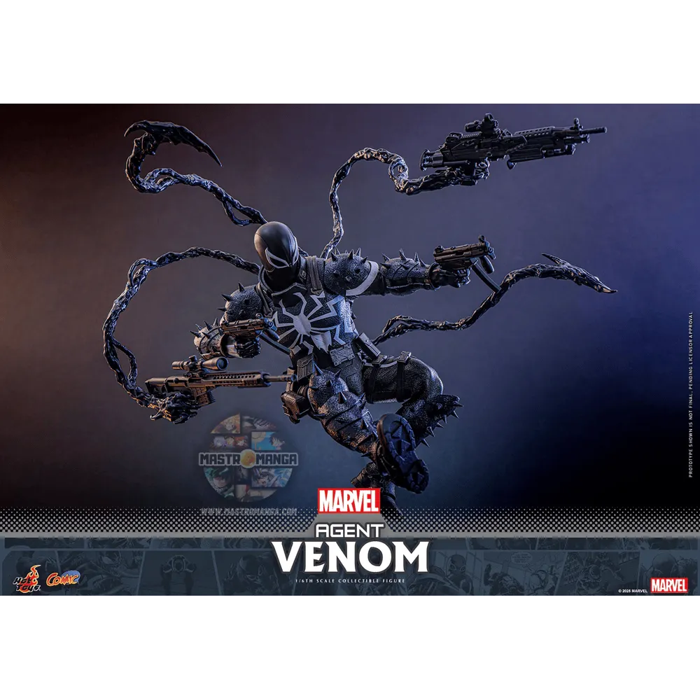 Meticolosamente realizzata sulla base di Marvel Comics, la action figure di Agent Venom presenta una scultura della testa di nuova concezione con occhielli intercambiabili, un corpo specializzato che ritrae naturalmente il fisico muscolare dell'agente Venom, un'armatura simbiotica con punte che mostrano un tema militare, un avambraccio a lama simbiotica intercambiabile, due stili di viticci attaccabili alla schiena della figura, due stringhe di accessori di tessitura, una serie di armi da fuoco tra cui fucile da cecchino, mitragliatrice, mitragliatrici, pistole e, infine ultimo luogo, una base di figura appositamente progettata con il nome del personaggio.