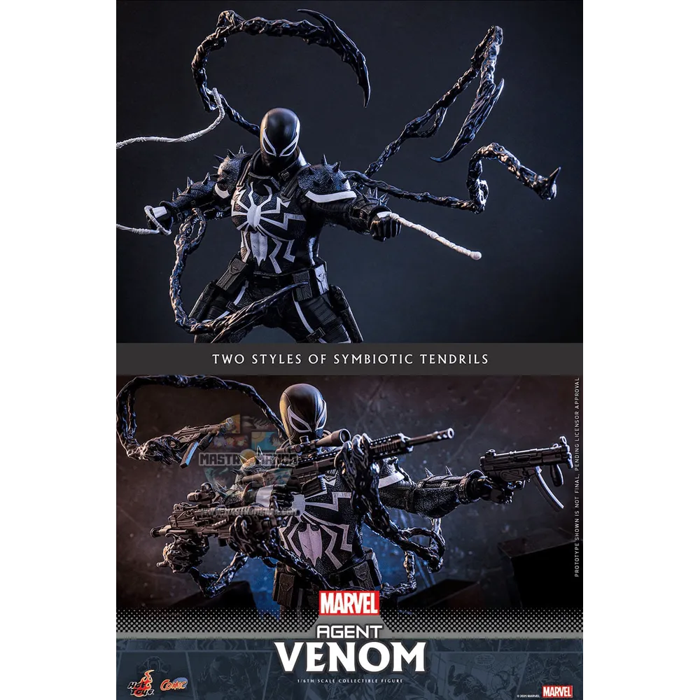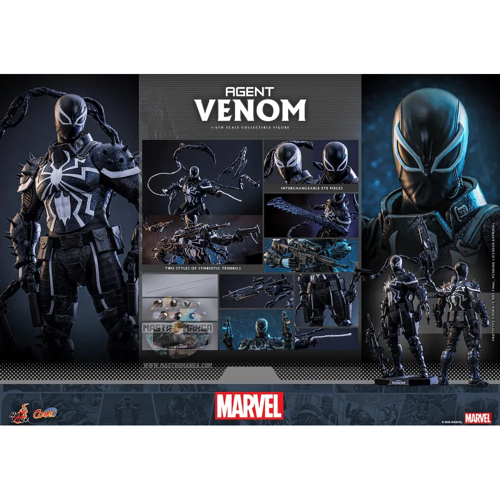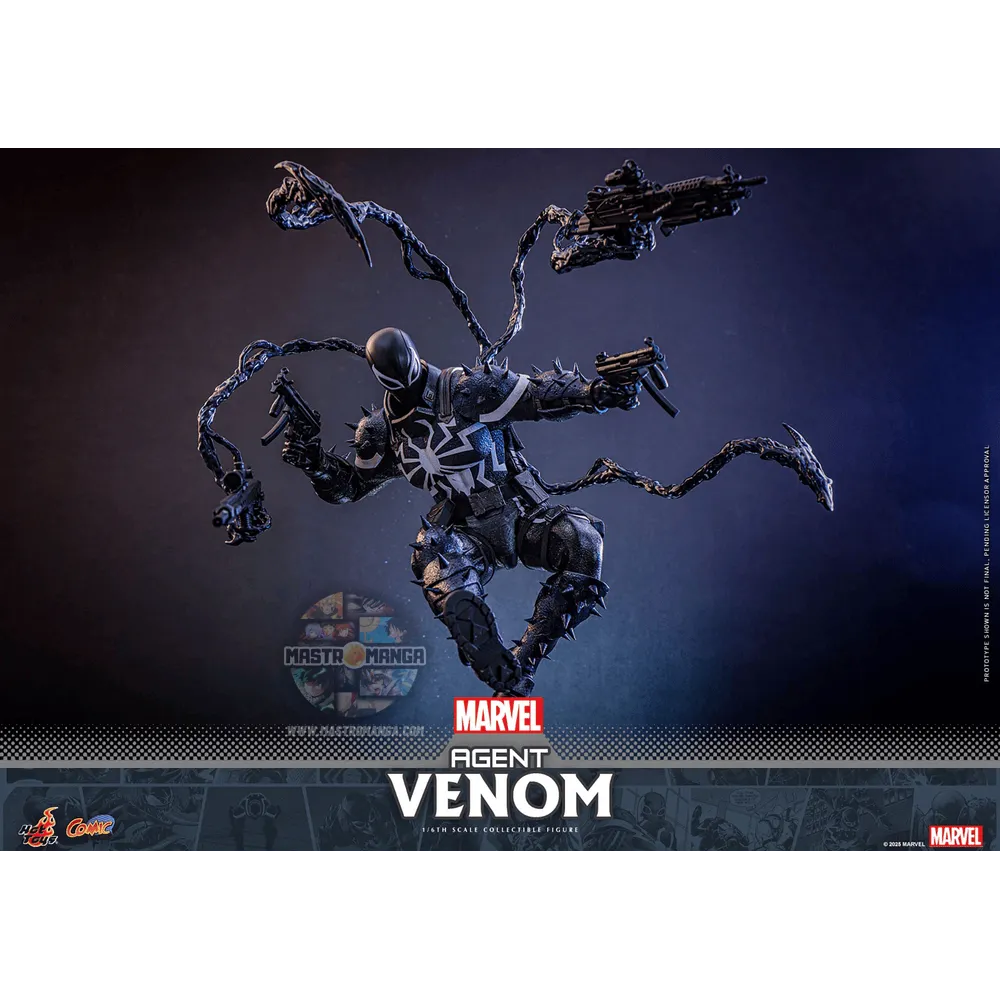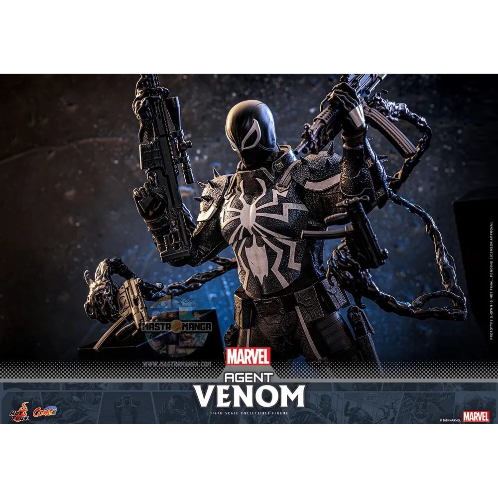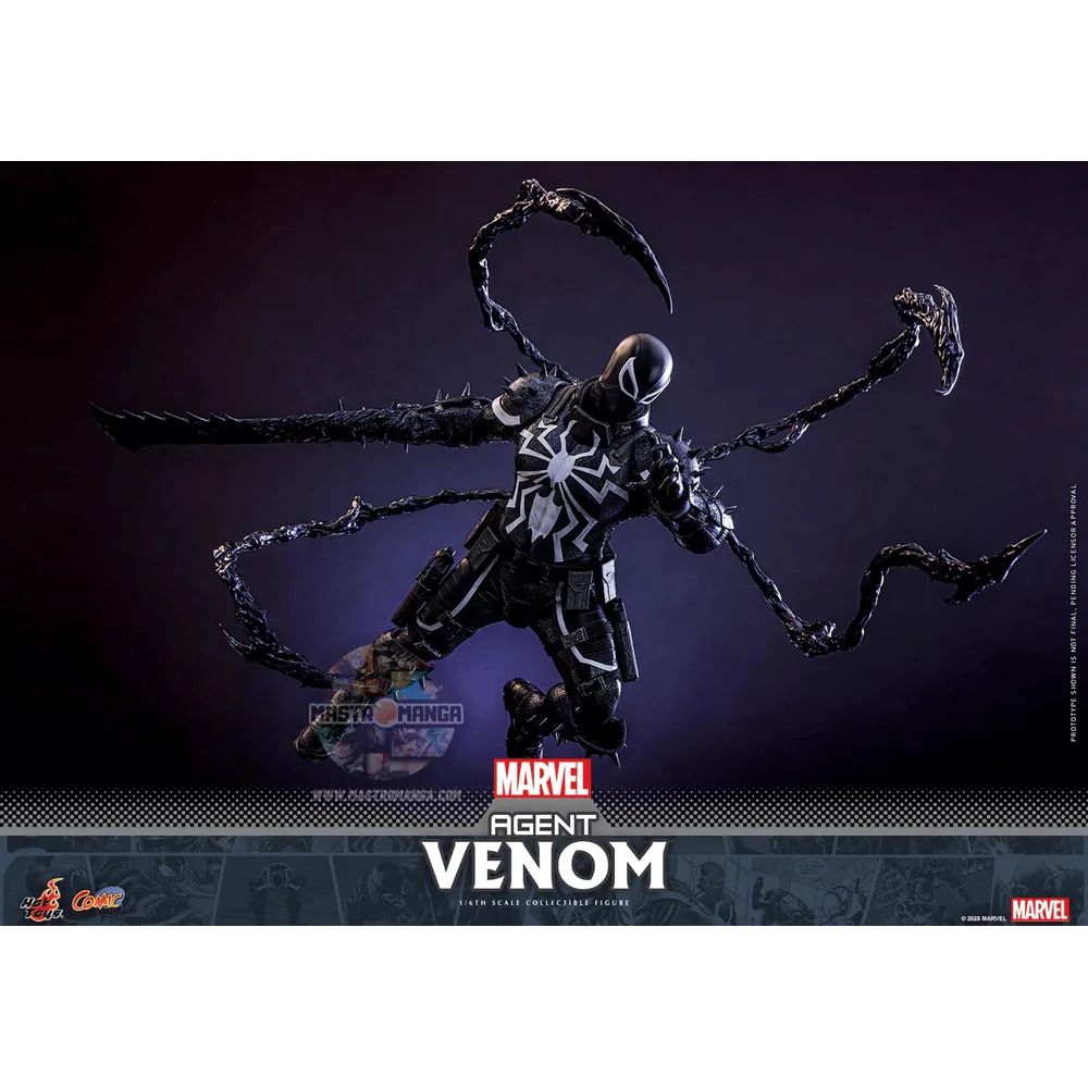 Meticolosamente realizzata sulla base di Marvel Comics, la action figure di Agent Venom presenta una scultura della testa di nuova concezione con occhielli intercambiabili, un corpo specializzato che ritrae naturalmente il fisico muscolare dell'agente Venom, un'armatura simbiotica con punte che mostrano un tema militare, un avambraccio a lama simbiotica intercambiabile, due stili di viticci attaccabili alla schiena della figura, due stringhe di accessori di tessitura, una serie di armi da fuoco tra cui fucile da cecchino, mitragliatrice, mitragliatrici, pistole e, infine ultimo luogo, una base di figura appositamente progettata con il nome del personaggio.