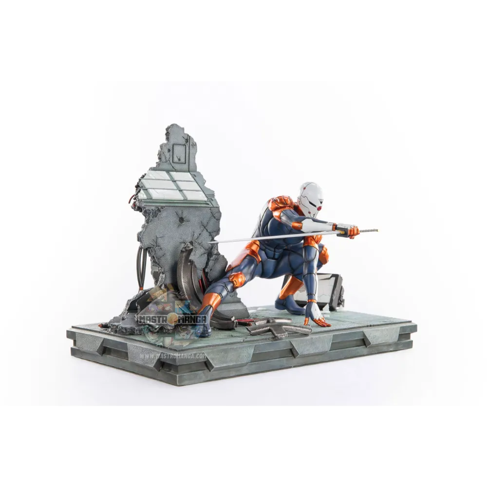 Questa realizzazione cattura alla perfezione l’aura enigmatica e potente di Gray Fox, con un livello di dettaglio sorprendente che riproduce fedelmente l’armatura cibernetica, i segni delle battaglie e la sua iconica lama ad alta frequenza. La posa dinamica esprime tutta la tensione dei combattimenti contro Solid Snake, rendendo la statua non solo un pezzo da esposizione ma una vera opera da collezione.