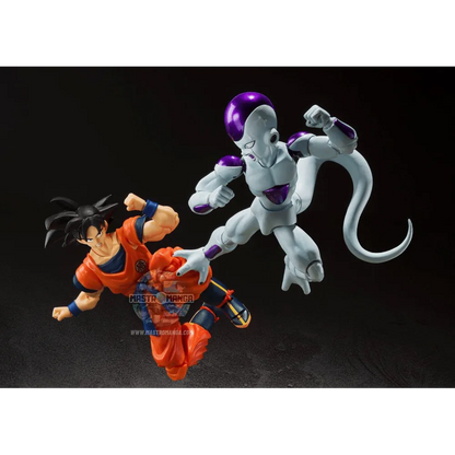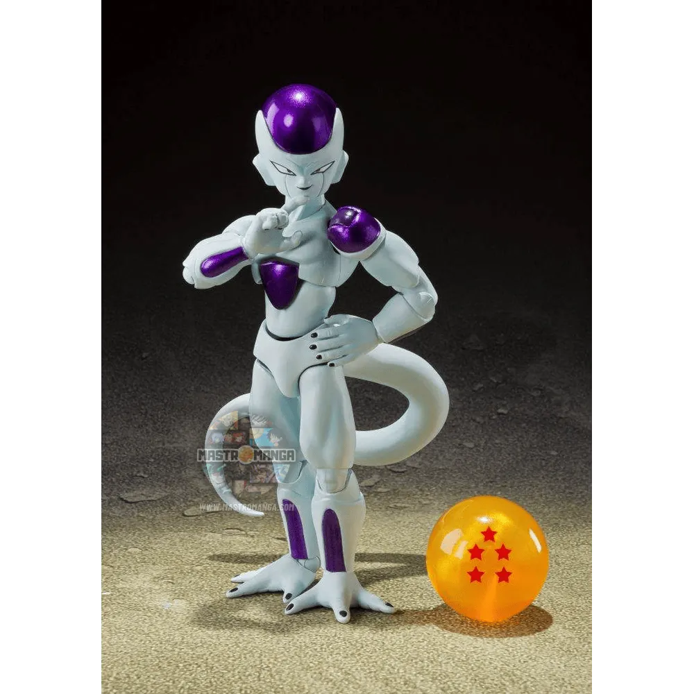 Frieza Fourth Form, come visto in "Dragon Ball Z" arriva nella serie SH Figuarts! Grazie alle tante articolazioni e agli accessori potrete ricreare tantissime scene dinamiche! Nella scatola troverete: due teste intercambiabili, mani , braccia e piedi opzionali, sfera del drago di Namecc con 5 stelle e altro ancora!