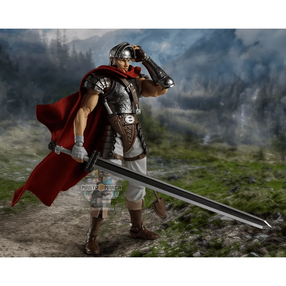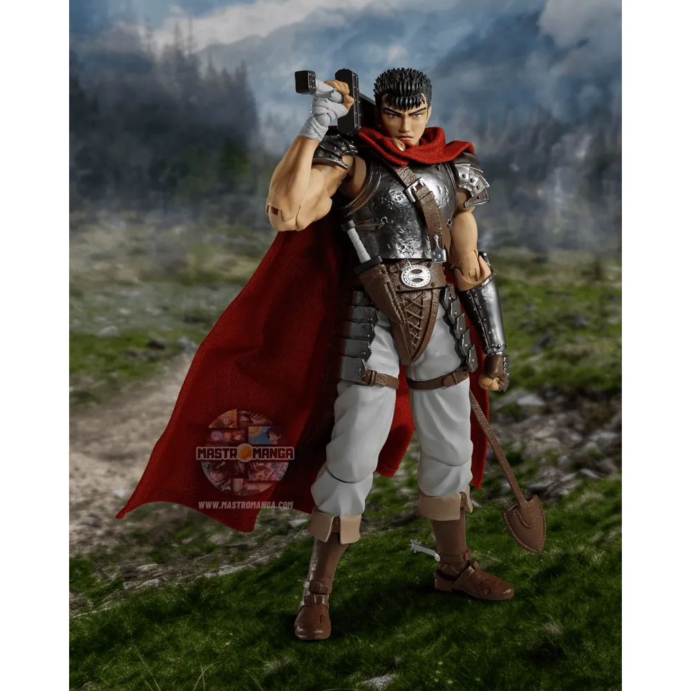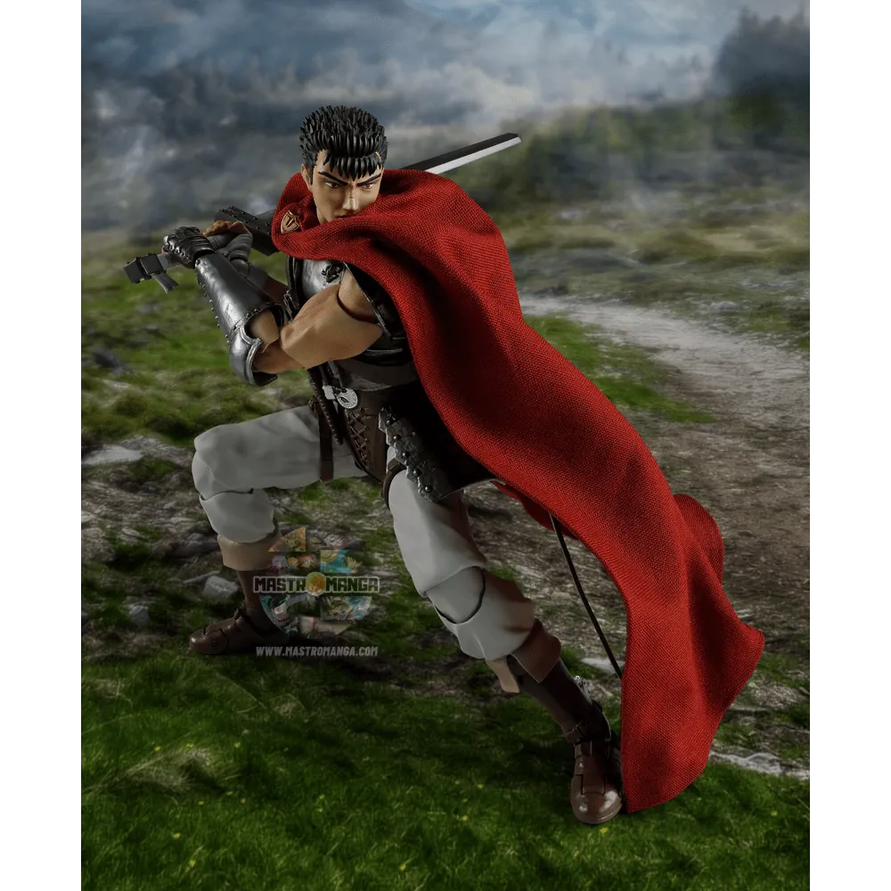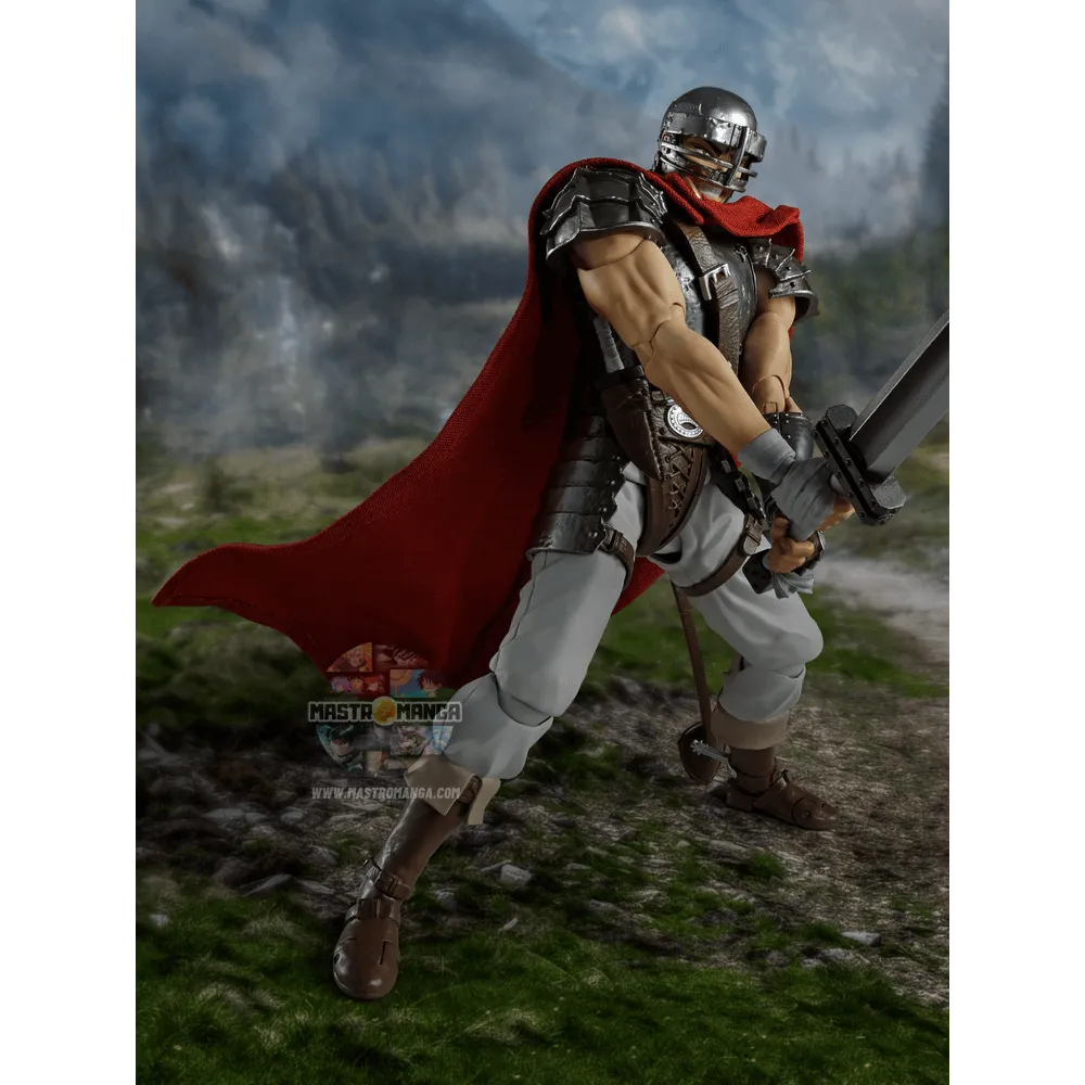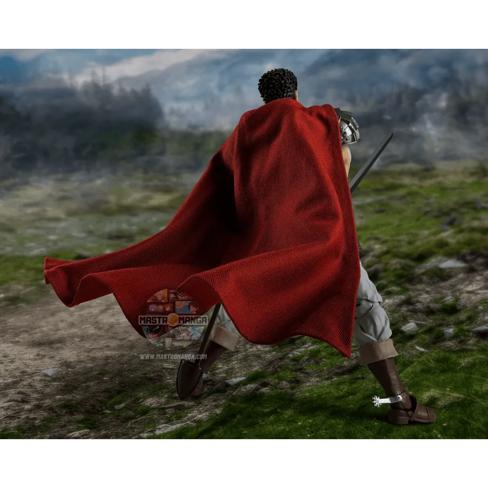 Dal famoso manga-anime dark fantasy “Berserk”, Guts alla saga “L'Eta' d'oro” è ora disponibile come action figure S.H.Figuarts. Sono incluse varie parti intercambiabili: diverse espressioni del viso, un elmetto che puo' essere aperto e chiuso, mani extra ed armi varie . Il suo mantello, dotato di un frame interno in fil di ferro, consente di creare qualsiasi posa desideriate.