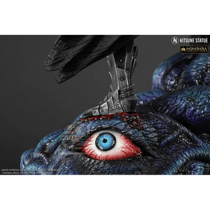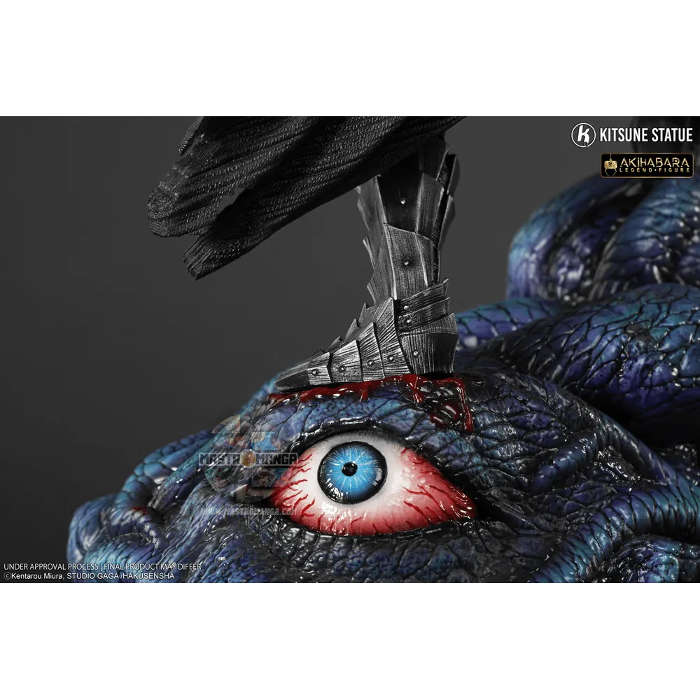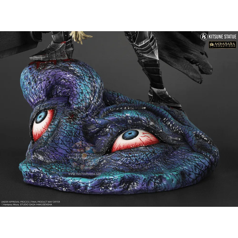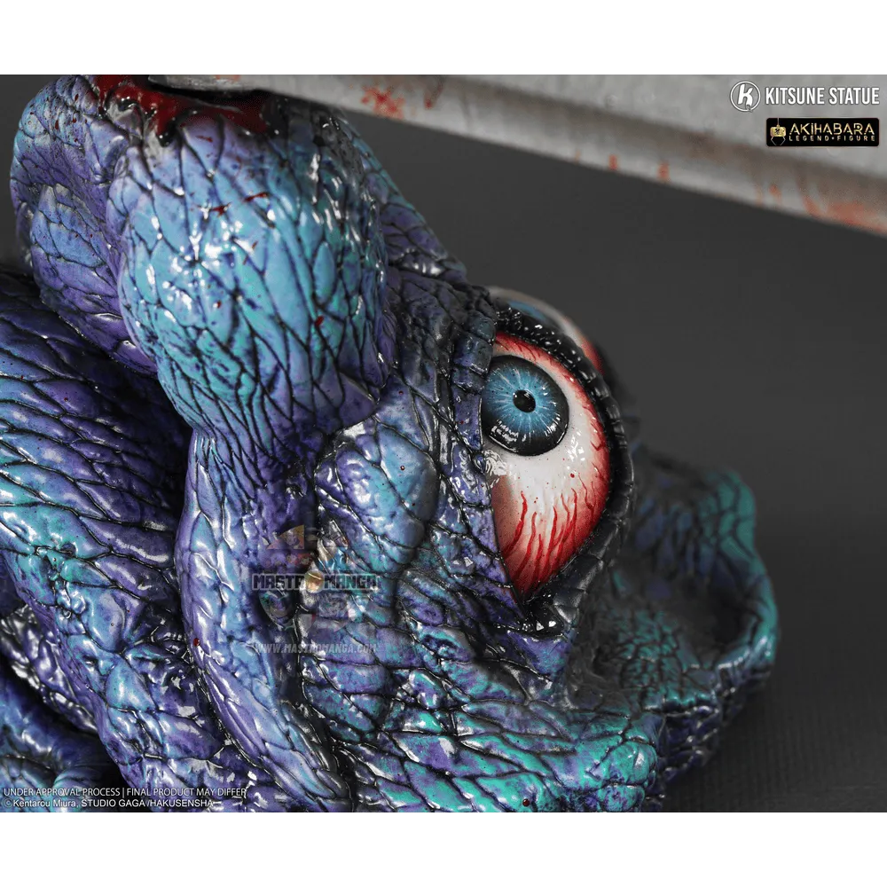 Questa figura altamente dettagliata ricrea l'armatura con un aspetto metallico utilizzando tocchi di sangue per creare un realismo sorprendente. Guts è preda di un eccesso di rabbia incontrollabile, è questo volto espressivo e molto rappresentativo immortalato qui. Il "Dio dei mari", è stato scolpito con un aspetto molto lucido e scintillante con dettagli sorprendenti come vene che formicolano negli occhi e una consistenza più squamosa e tentacolare.
