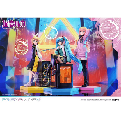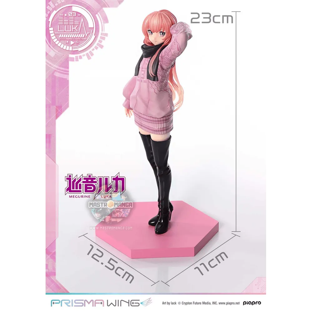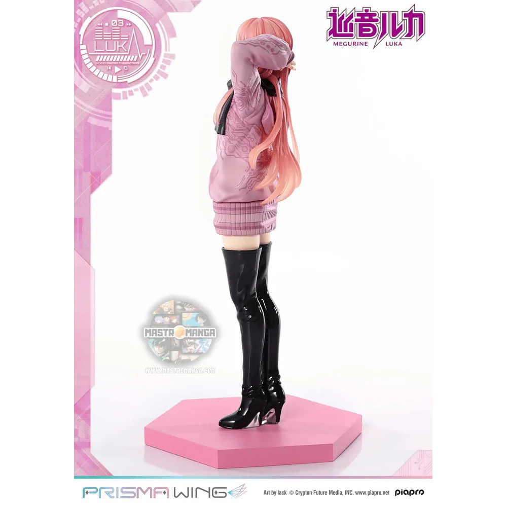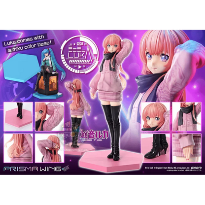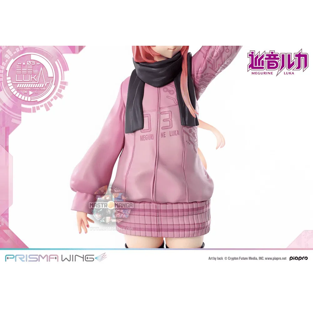La felpa con cappuccio ampia di Luka fa parte del marchio di abbigliamento di Prime 1 Studio, "WEAREVERWIz". Il "03" sul davanti e i modelli cyber-inspired sono ricreati con decalcomanie ad alta precisione, proprio come il vero prodotto. Non perderti il suo outfit sofisticato con la combinazione di zona assoluta e stivali lunghi. Inoltre, questa figura viene fornita con una base appositamente progettata che si abbina allo stile di "Hatsune Miku 'Art by lack'", consentendo una visualizzazione unificata quando i due sono posizionati insieme.