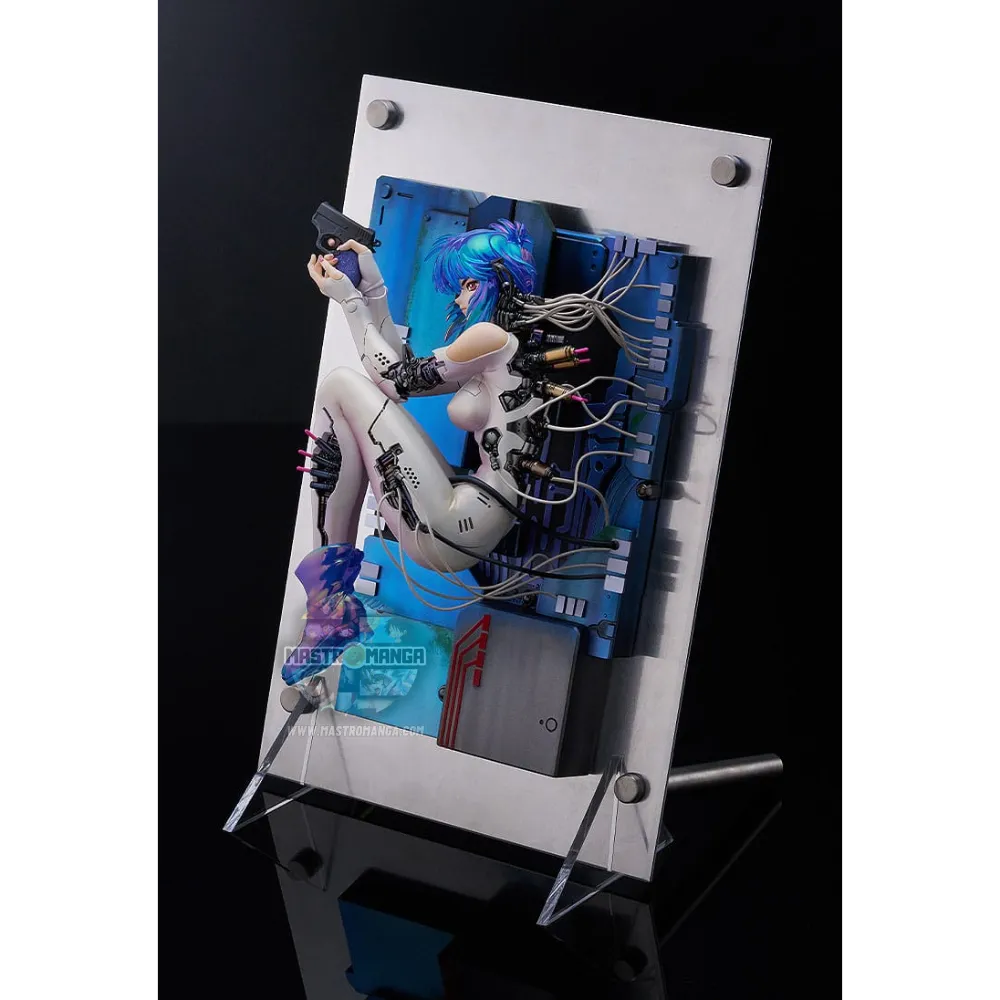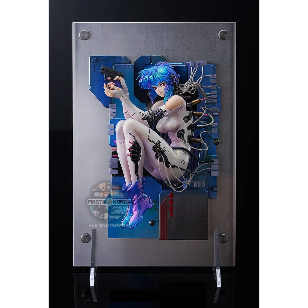 La scultura riproduce fedelmente il design del manga, con tratti decisi e proporzioni perfette che evocano lo stile inconfondibile dell’autore. Ogni dettaglio — dalla tuta tattica alle armi high-tech — è modellato con precisione e rifinito con una palette di colori che esalta il tono futuristico dell’opera. L’espressione risoluta di Motoko riflette la sua dualità: una guerriera determinata e al tempo stesso un’anima in cerca di identità.