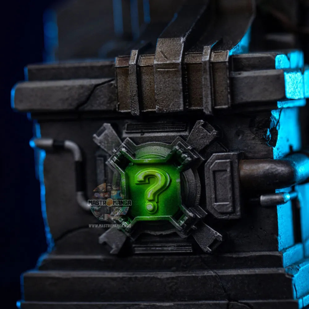 La base esclusiva diorama arricchisce la presentazione, donando tridimensionalità e contestualizzando il personaggio nel mondo DC. Il livello di pittura è preciso e realistico, con tonalità e sfumature che mettono in risalto le linee muscolari e i contrasti cromatici del costume.