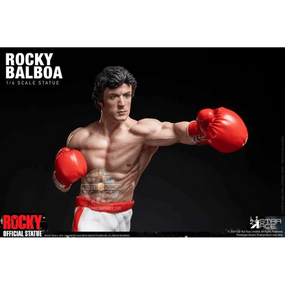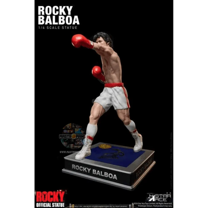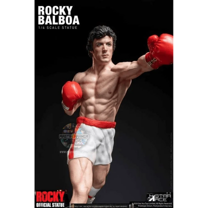 Alto circa 50 cm, questo pezzo meticolosamente realizzato cattura l'essenza del leggendario Apollo Creed, nei suoi iconici pantaloncini, dal primo epico combattimento.