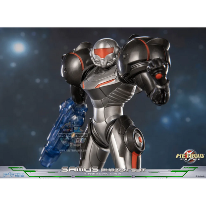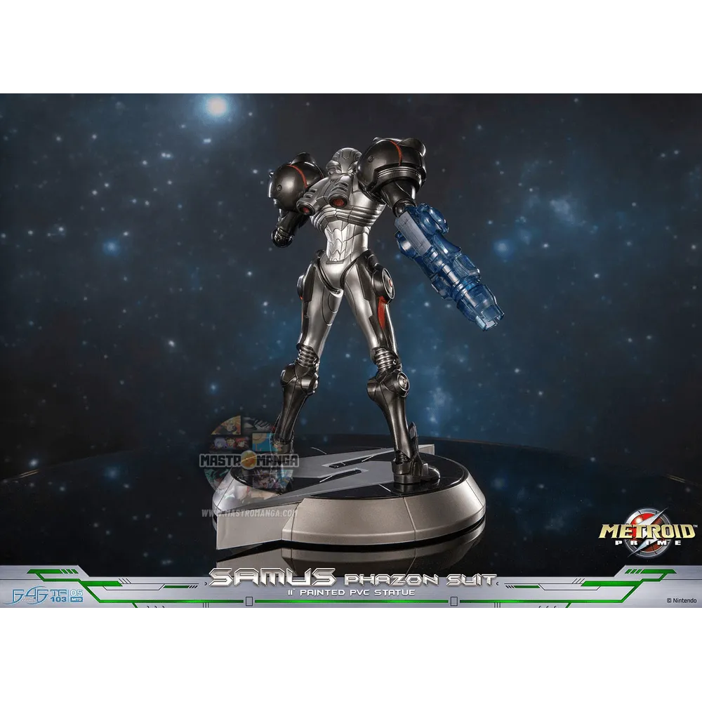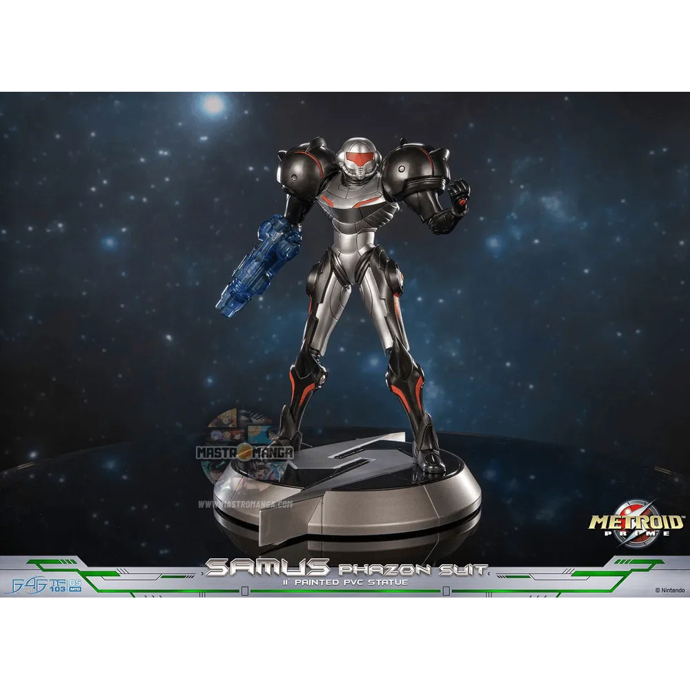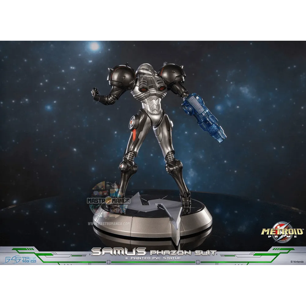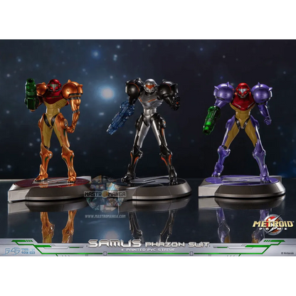 First 4 Figures è orgogliosa di presentare una statua in PVC dipinta di Samus con la tuta Phazon della serie classica di videogiochi Metroid Prime! La Phazon Suit è un aggiornamento della Power Suit che appare in molte iterazioni della serie Metroid. Per questa statua in PVC, il team di First 4 Figures ha ricreato fedelmente la Tuta Phazon con il suo design elegante e i suoi componenti iconici, compreso il caratteristico cannone a braccio Phazon Beam. La base della statua è una versione dell'emblema Screw Attack, che da allora è diventato il logo della serie Metroid.
