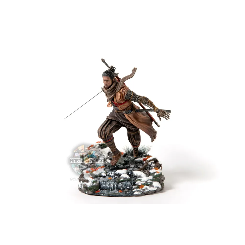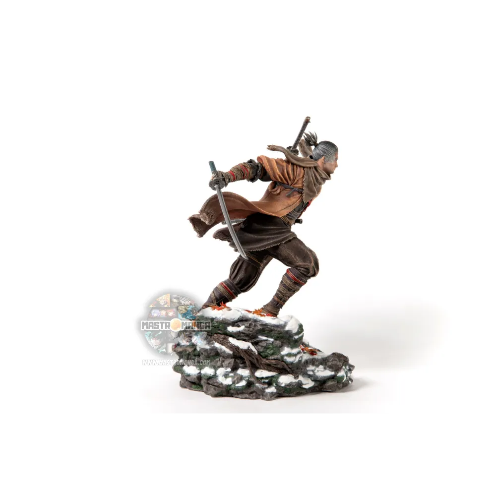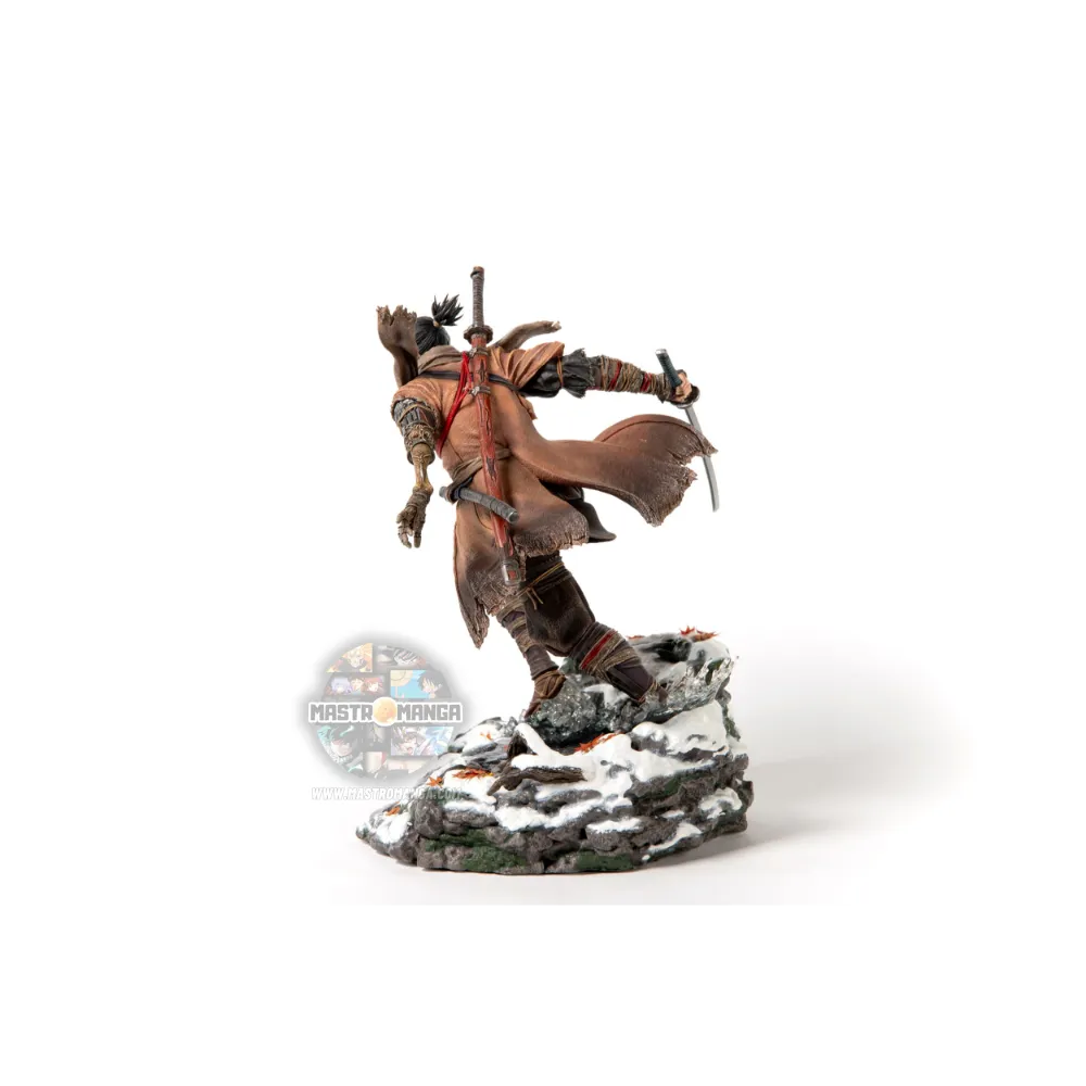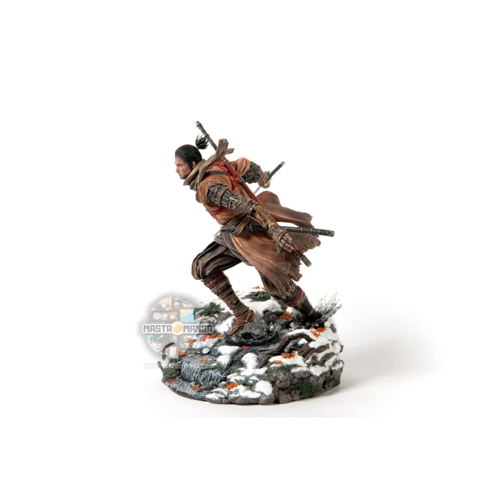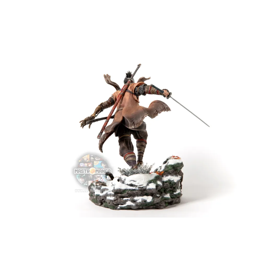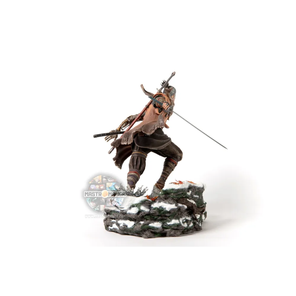 Questa statua raffigura Sekiro in una posa dinamica, con la Kusabimaru nella mano destra e la Lama Mortale portata sulla schiena. Ogni aspetto del suo aspetto è riprodotto con meticolosa precisione: dal suo Look spettinato e l’abbigliamento da shinobi logoro fino ai dettagli intricati del suo Braccio Prostetico.