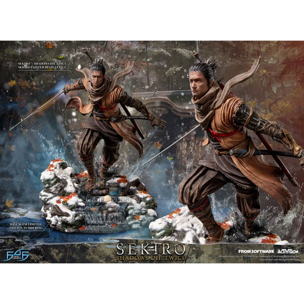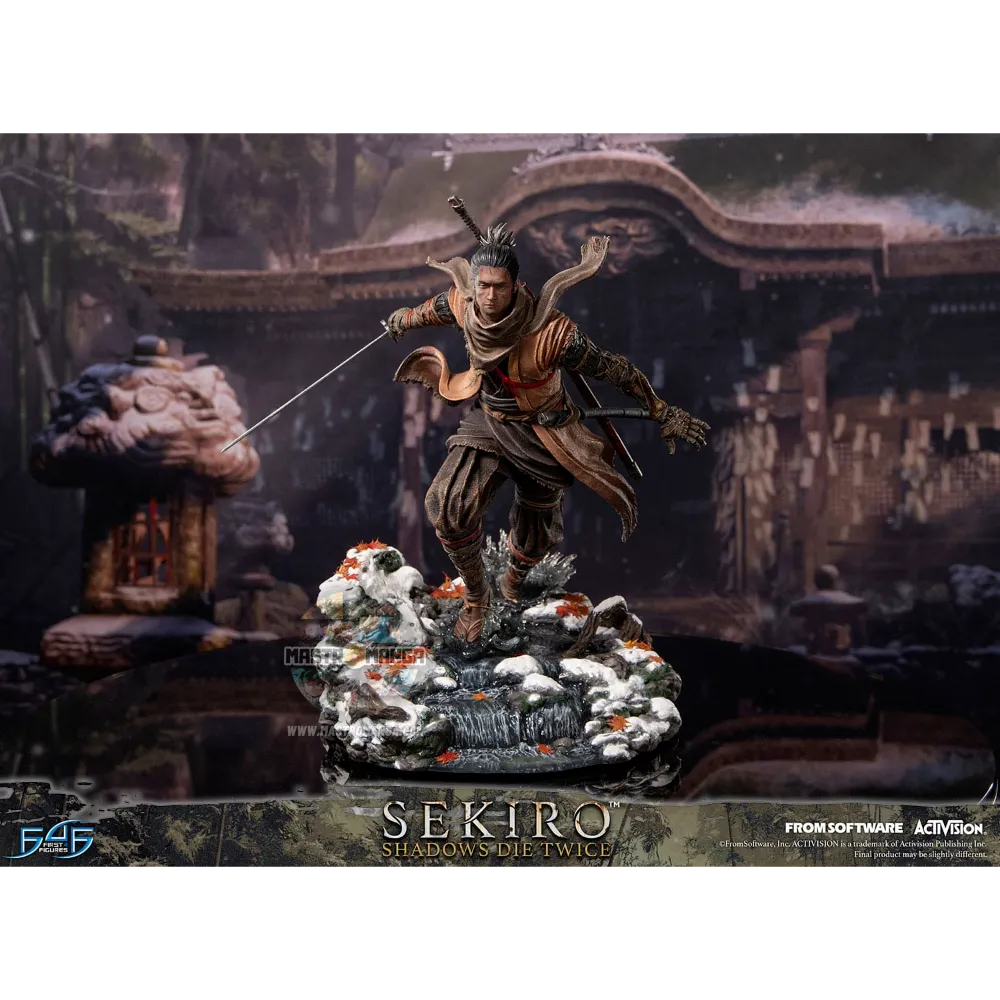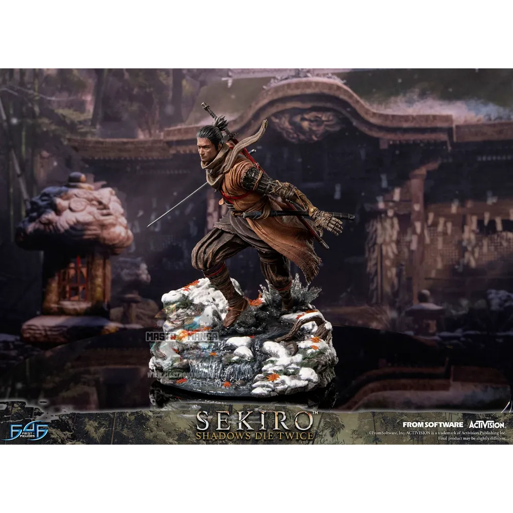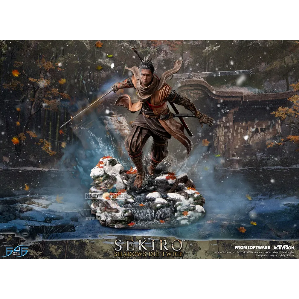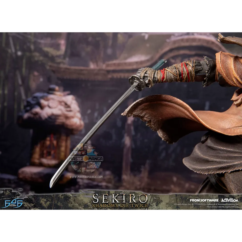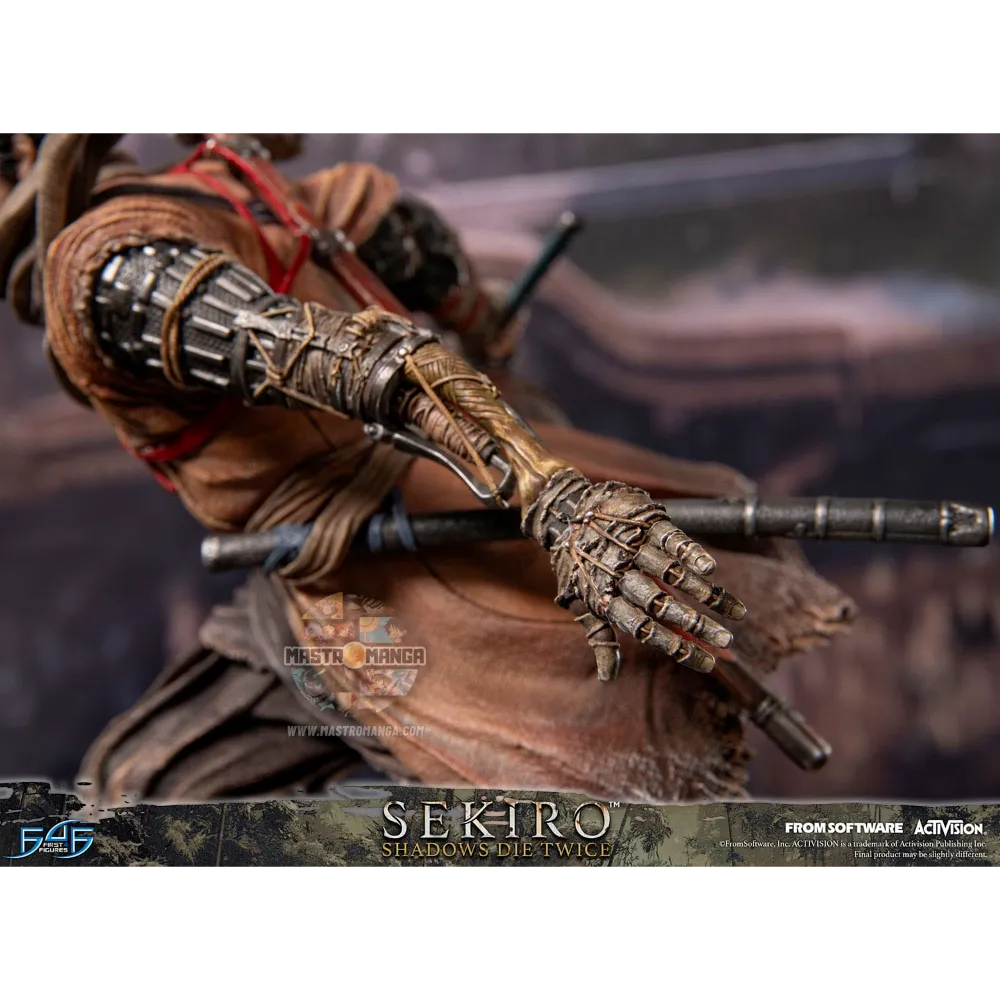 Questa statua raffigura Sekiro in una posa dinamica, con la Kusabimaru nella mano destra e la Lama Mortale portata sulla schiena. Ogni aspetto del suo aspetto è riprodotto con meticolosa precisione: dal suo Look spettinato e l’abbigliamento da shinobi logoro fino ai dettagli intricati del suo Braccio Prostetico.