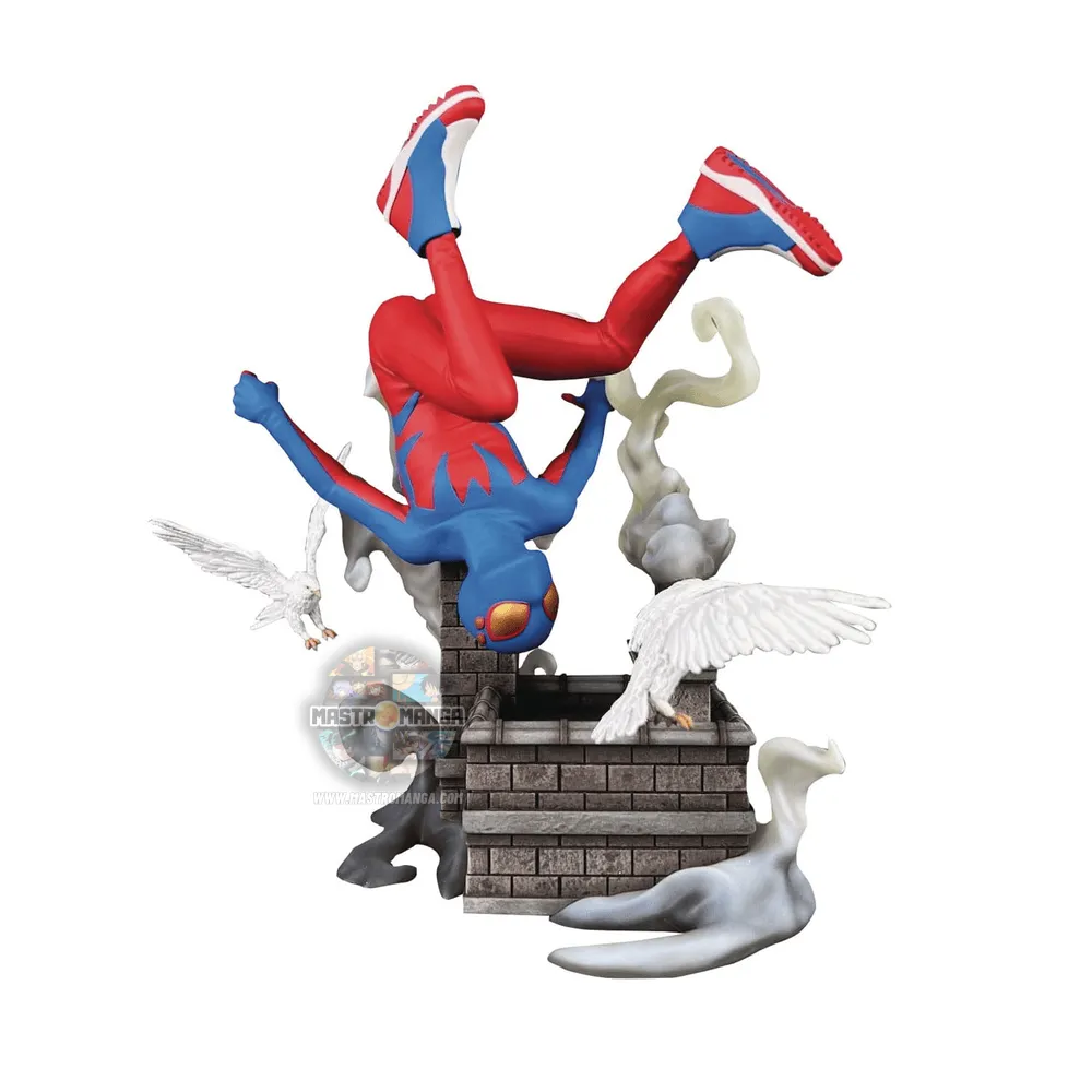 Il giovane eroe Spider-Boy vola su un tetto di New York City in questo nuovissimo Gallery Diorama di DST! Circondato da piccioni svolazzanti, Spider-Boy misura circa 8” di altezza ed è realizzato in PVC di alta qualità. Questa statua è caratterizzata da una scultura altamente dettagliata ed arriva in un box a finestra.