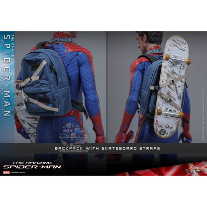 Basata sull'aspetto di Peter Parker / Spider-Man di Andrew Garfield nel film, la figura da collezione in sesta scala meticolosamente realizzata presenta una scultura della testa di Peter Parker di nuova concezione con bulbi oculari rotolanti separati, una scultura di testa mascherata; un abito rosso e blu eccezionalmente su misura con motivo a ragnatela, incarnato da un corpo specializzato di nuova concezione con articolazione migliorata; una varietà di accessori tra cui uno skateboard, uno zaino, un cellulare, una fotocamera con striscia e una maschera di Spider-Man, nonché accessori di tessitura assortiti e un supporto per figure dinamico.