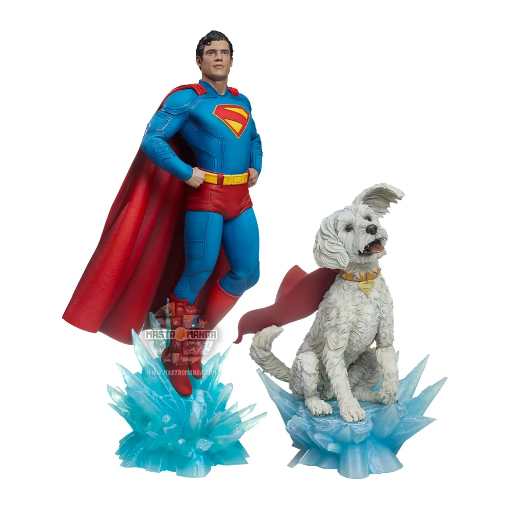 Superman misura circa 61 x 28 x 28 cm. ed è realizzato in polistone di alta qualità. È dipinto a mano e numerato a mano. L'oggetto del collezionista è fornito con una base protetta da polistirolo in una scatola di cartone stampata.