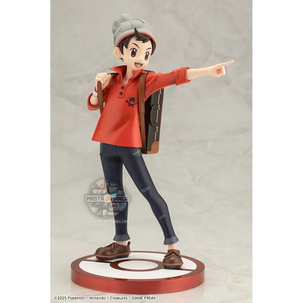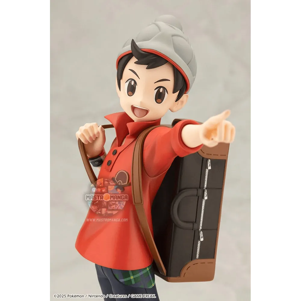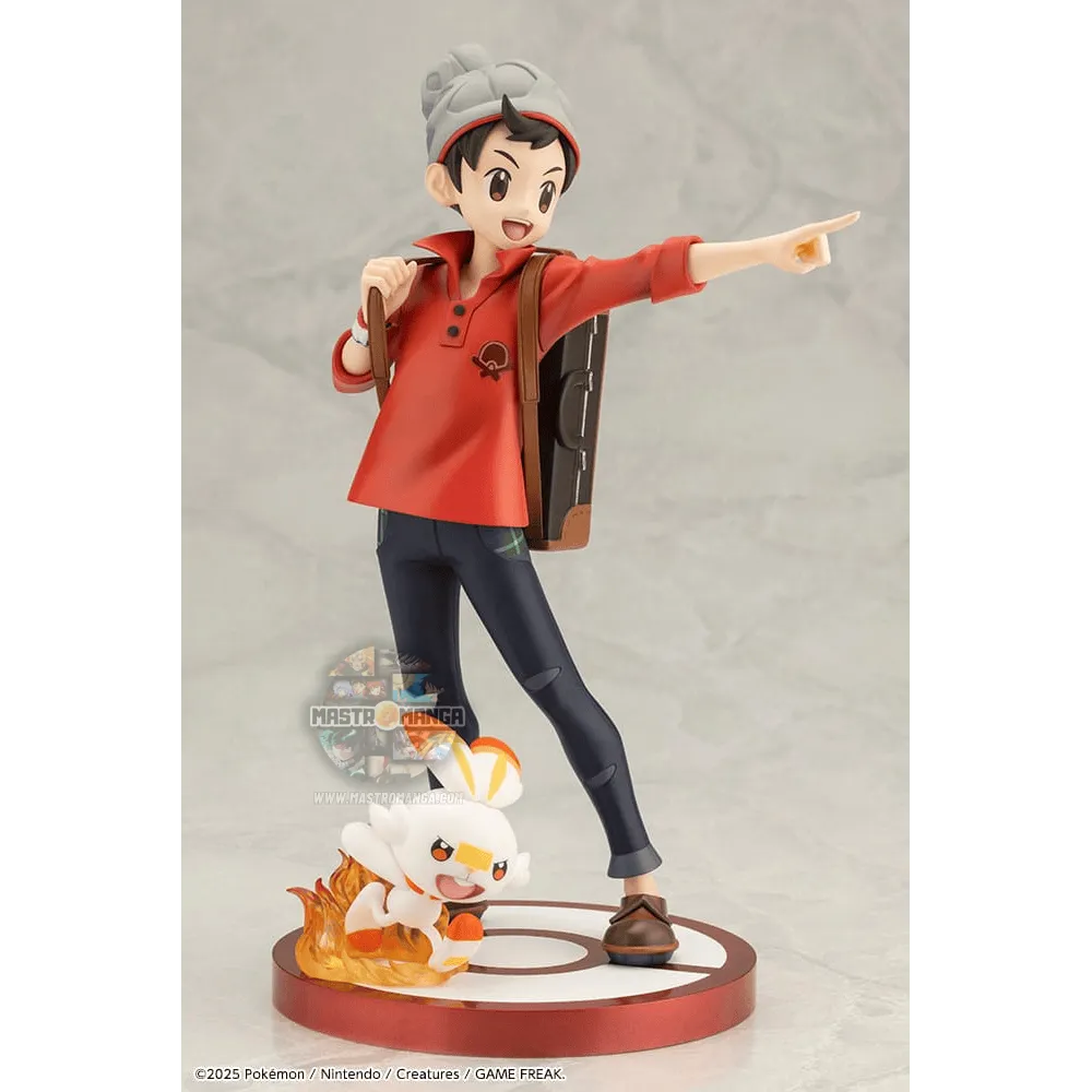 Victor e Scorbunny di Pokémon Sword Shield si uniscono alla formazione! Victor è posato indicando in lontananza, rappresentando la grande avventura che lui e i suoi compagni stanno per intraprendere nella regione di Galar.