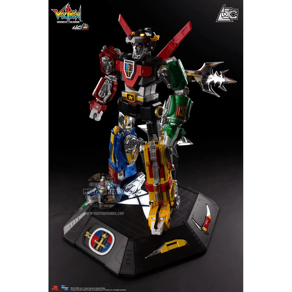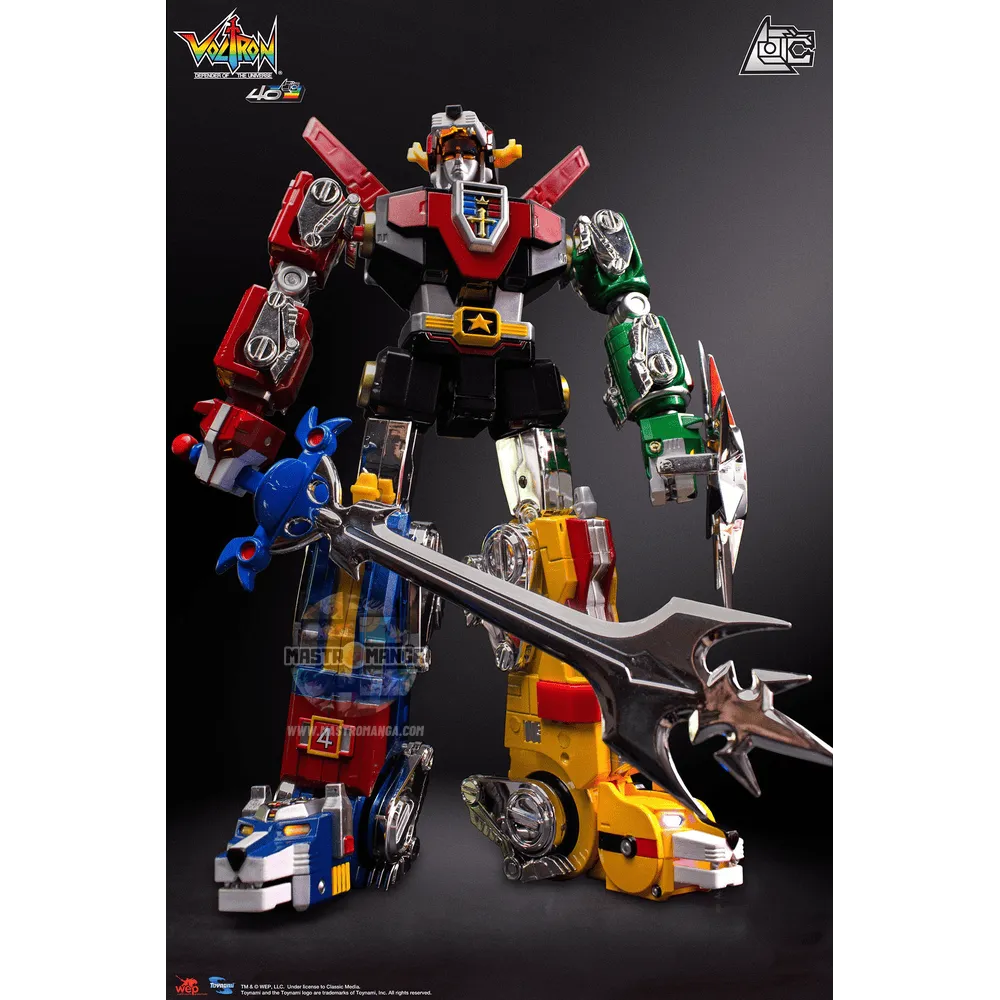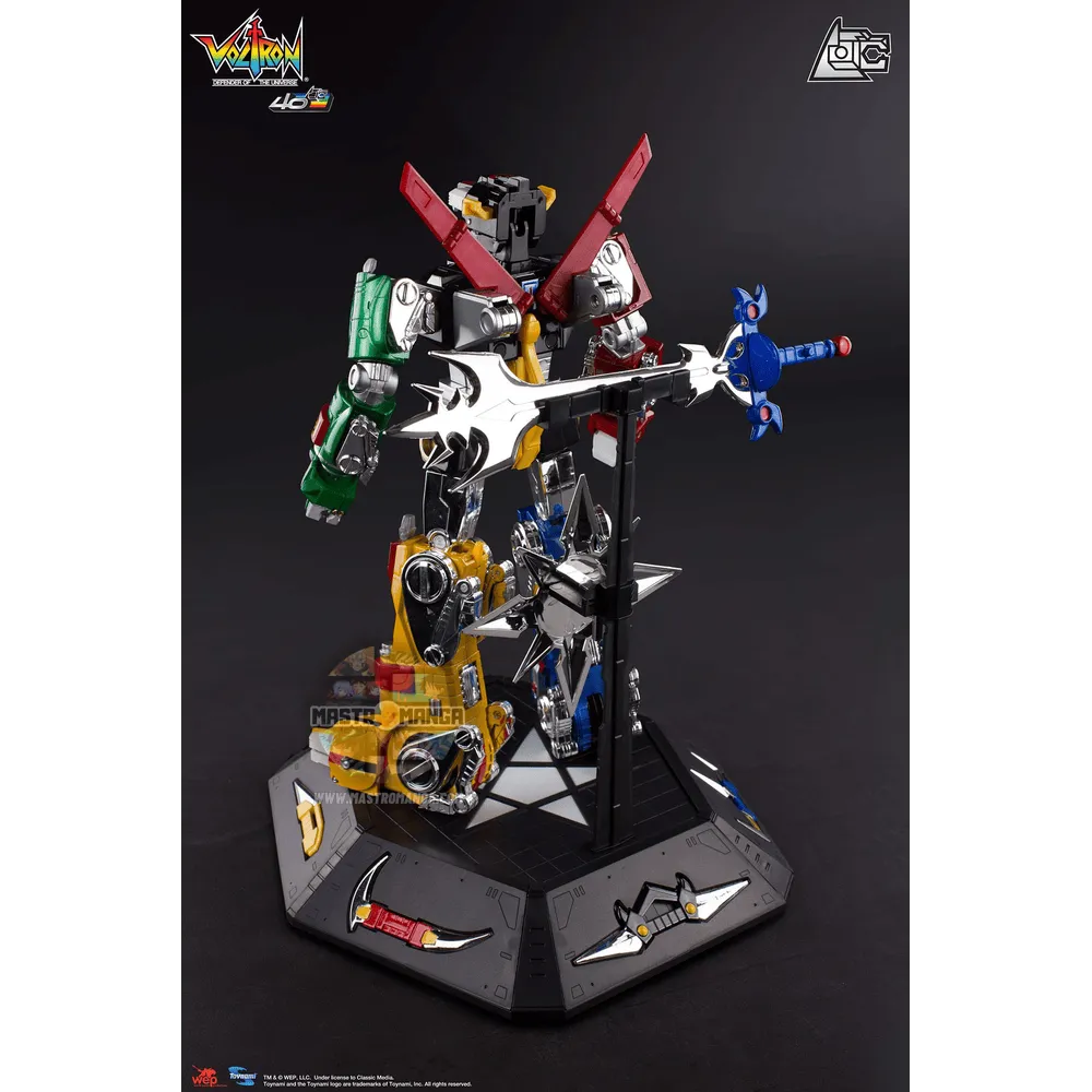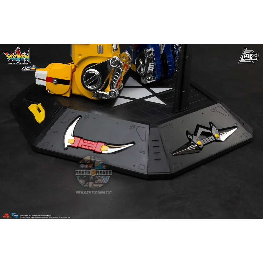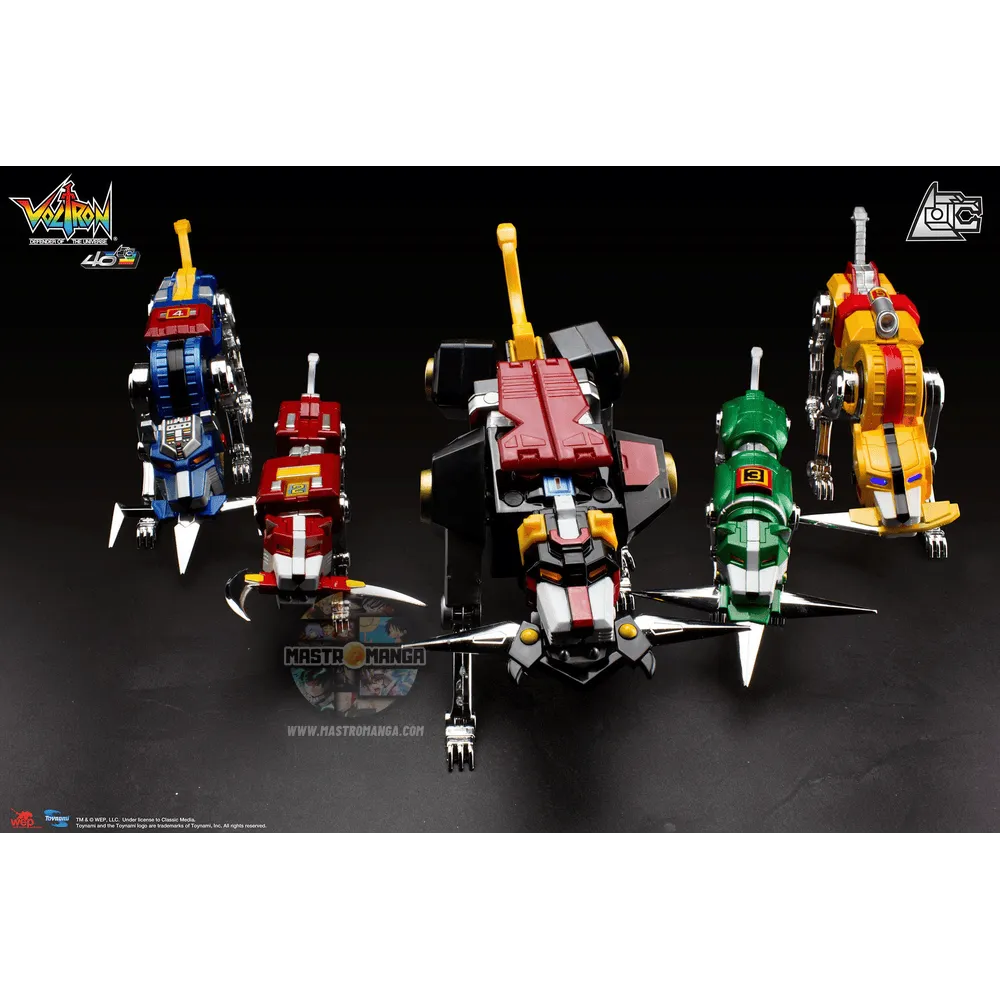 Questo pezzo da collezione in edizione limitata sarà prodotto solo per il 40° anniversario e consiste in cinque leoni completamente trasformabili che si uniscono per formare Voltron, Difensore dell'Universo! Ogni leone sarà dotato di occhi luminosi, attivati da una chiave magnetica unica.